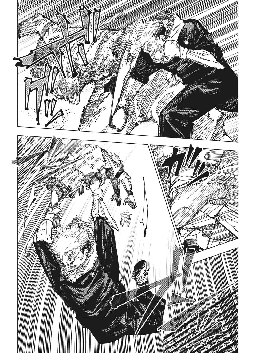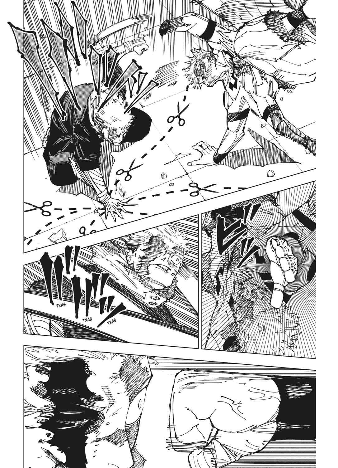 Amb la intenció de separar en Sukuna d’en Fushiguro a la força llançant la tècnica “Desbaratament” a la frontera de les seves ànimes, l’Itadori expandeix el seu territori... i gràcies a l’atac pressiona en Sukuna!! Quin serà l’últim as a la màniga que marcarà el punt final d’aquesta batalla contra les malediccions?!