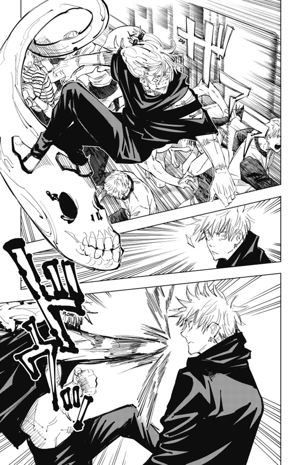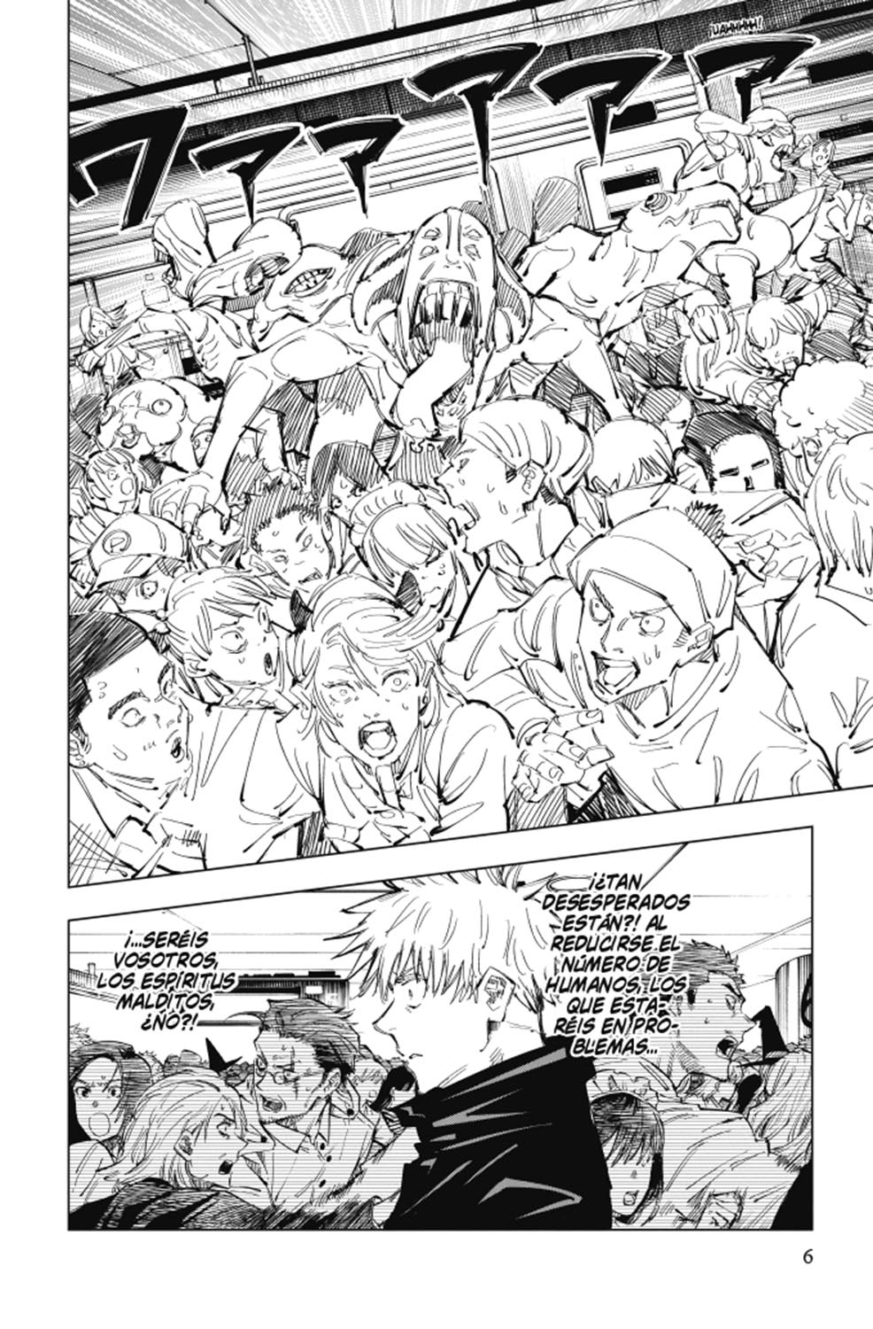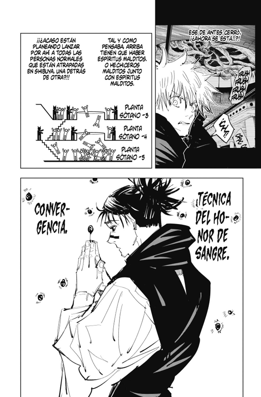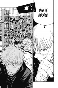 El andén del metro de la estación de Shibuya está abarrotado tanto de gente normal como de humanos remodelados… Gojô supera con creces a los espíritus malditos a pesar de estar bajo una situación de lo más cruel, de la cual no tiene escapatoria. ¡¡Y mientras tanto, junto a Itadori aparece un inesperado aliado, quien se apresura a llegar hasta el andén del metro!!