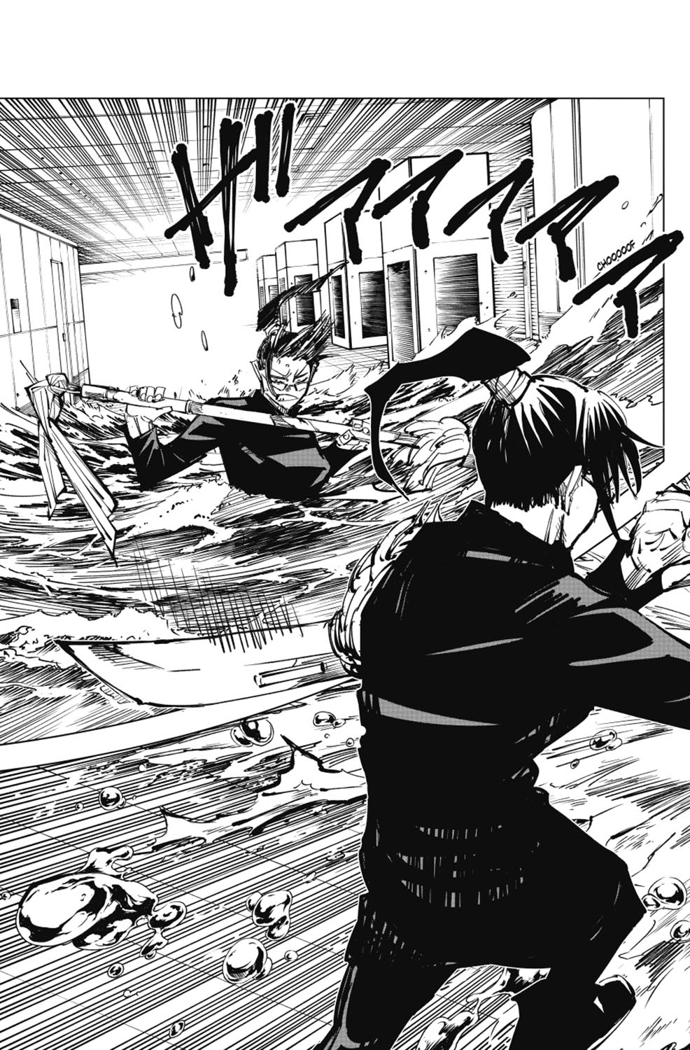 ¡¡Y su infinito torrente de poder maldito cae sobre Naobito, Maki y Nanami!! ¡Por otro lado, el grupo de hechiceros malditos que siguen a Getô, con tal de recuperar su cuerpo, despiertan a aquel a quien más deberían evitar, pero…!