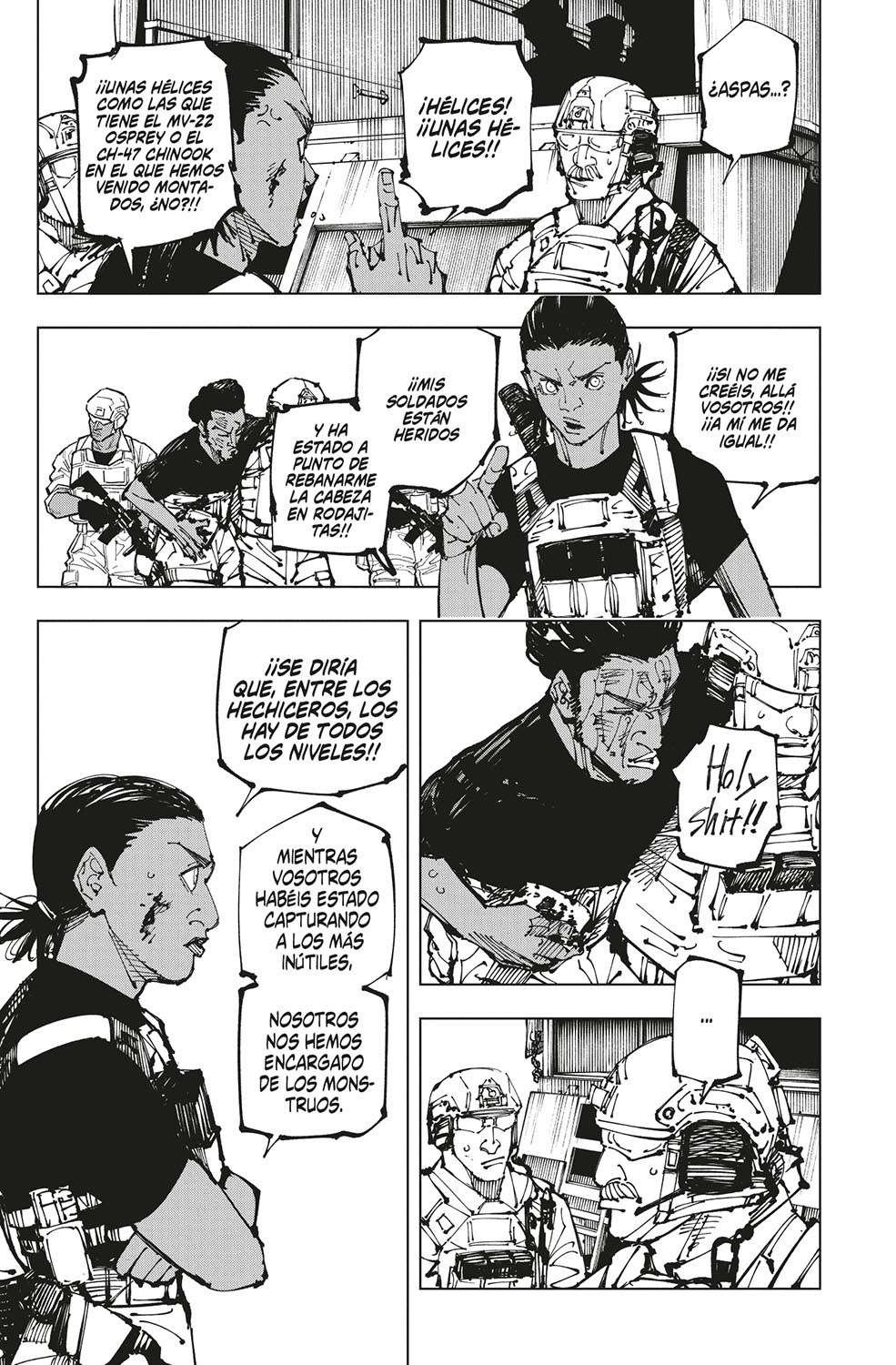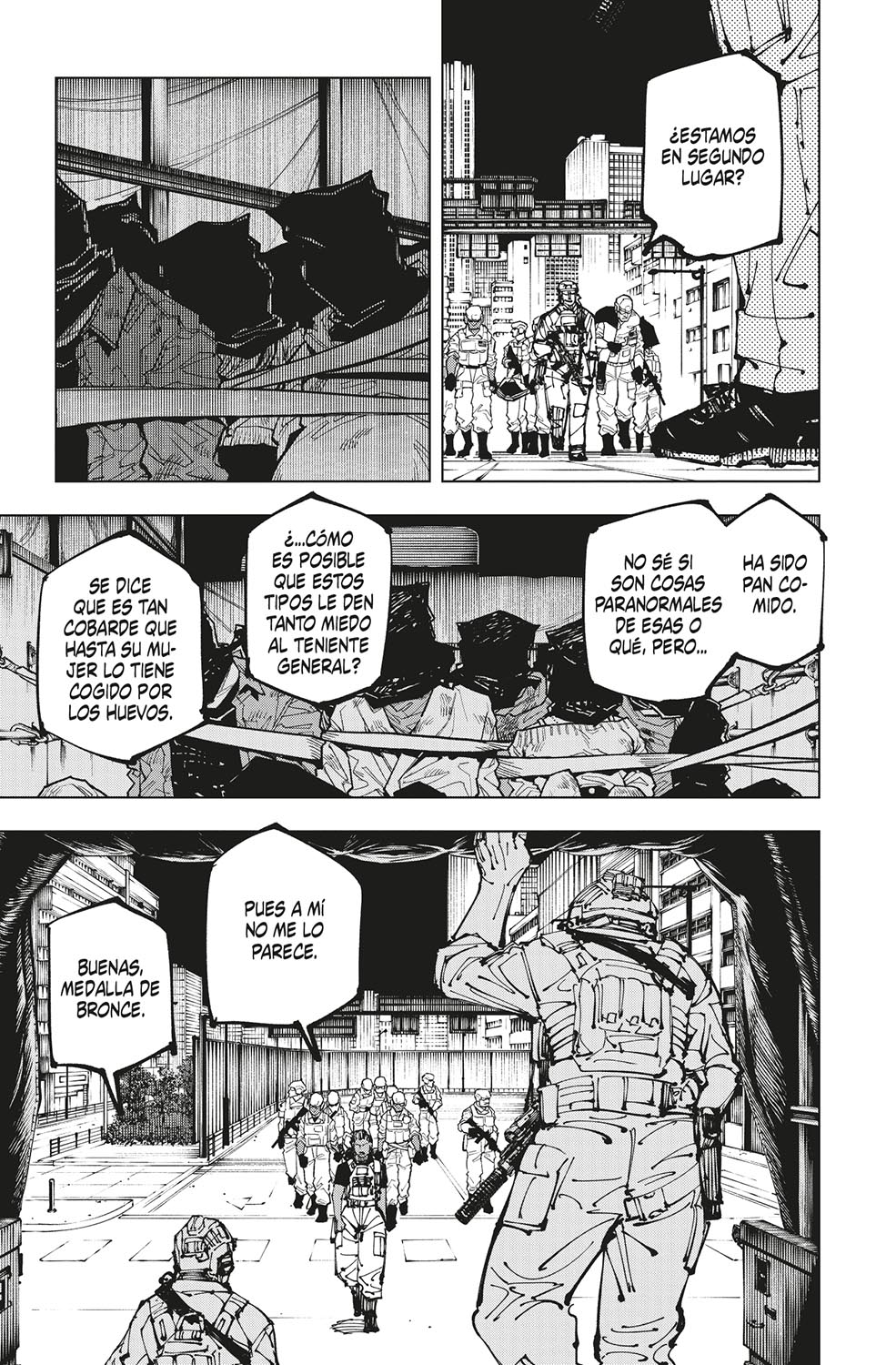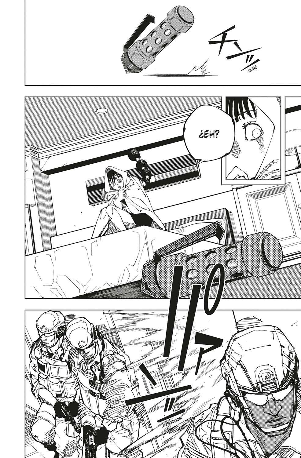 Han sido varios los países que, de repente, han desplegado un avance militar. ¡Pero los soldados que se suponían que debían atrapar a los hechiceros están siendo masacrados por los espíritus malditos y, como resultado, están llenando las colonias con poder maldito! Mientras los preparativos previos a la asimilación con Tengen siguen su curso, Fushiguro intenta hacer que su hermana mayor, Tsumiki, se retire del viaje de aniquilación, pero…