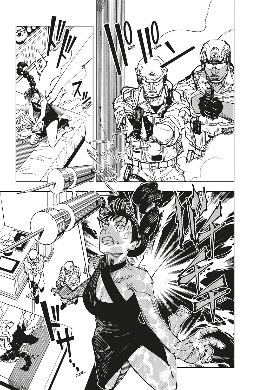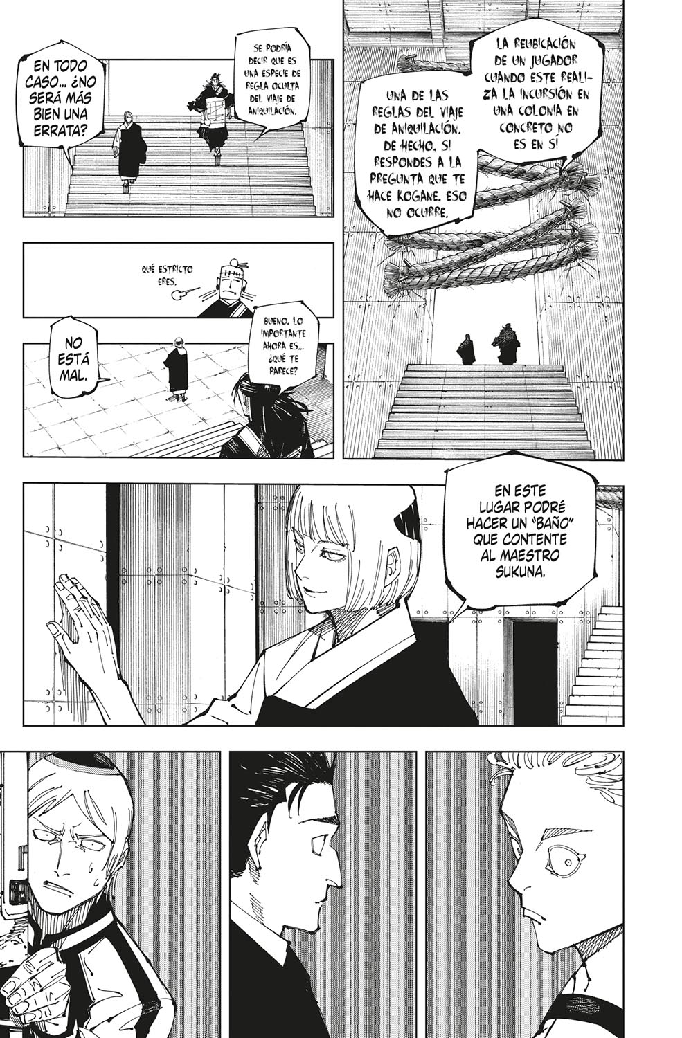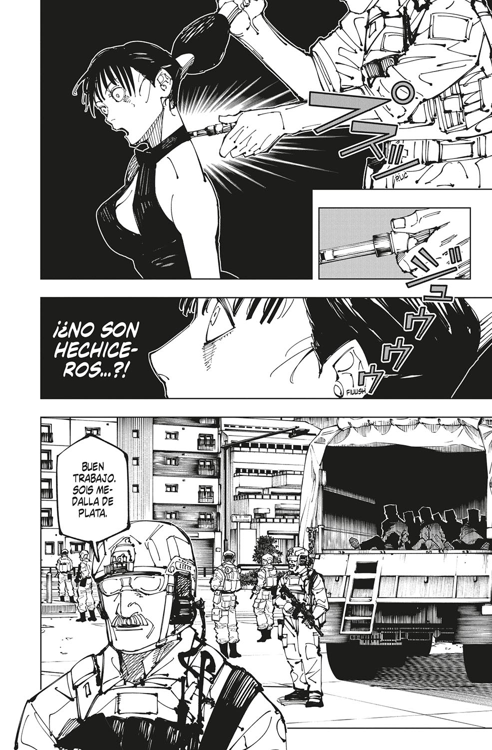 Han sido varios los países que, de repente, han desplegado un avance militar. ¡Pero los soldados que se suponían que debían atrapar a los hechiceros están siendo masacrados por los espíritus malditos y, como resultado, están llenando las colonias con poder maldito! Mientras los preparativos previos a la asimilación con Tengen siguen su curso, Fushiguro intenta hacer que su hermana mayor, Tsumiki, se retire del viaje de aniquilación, pero…