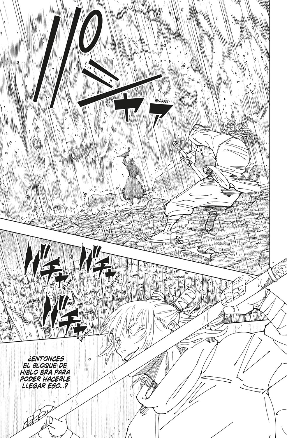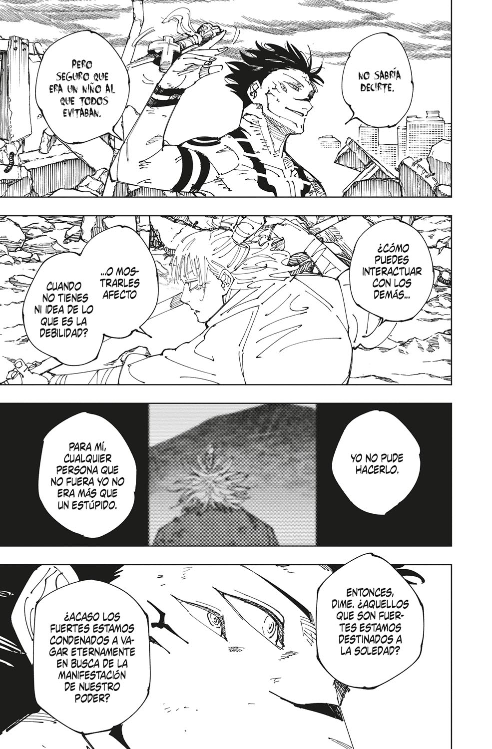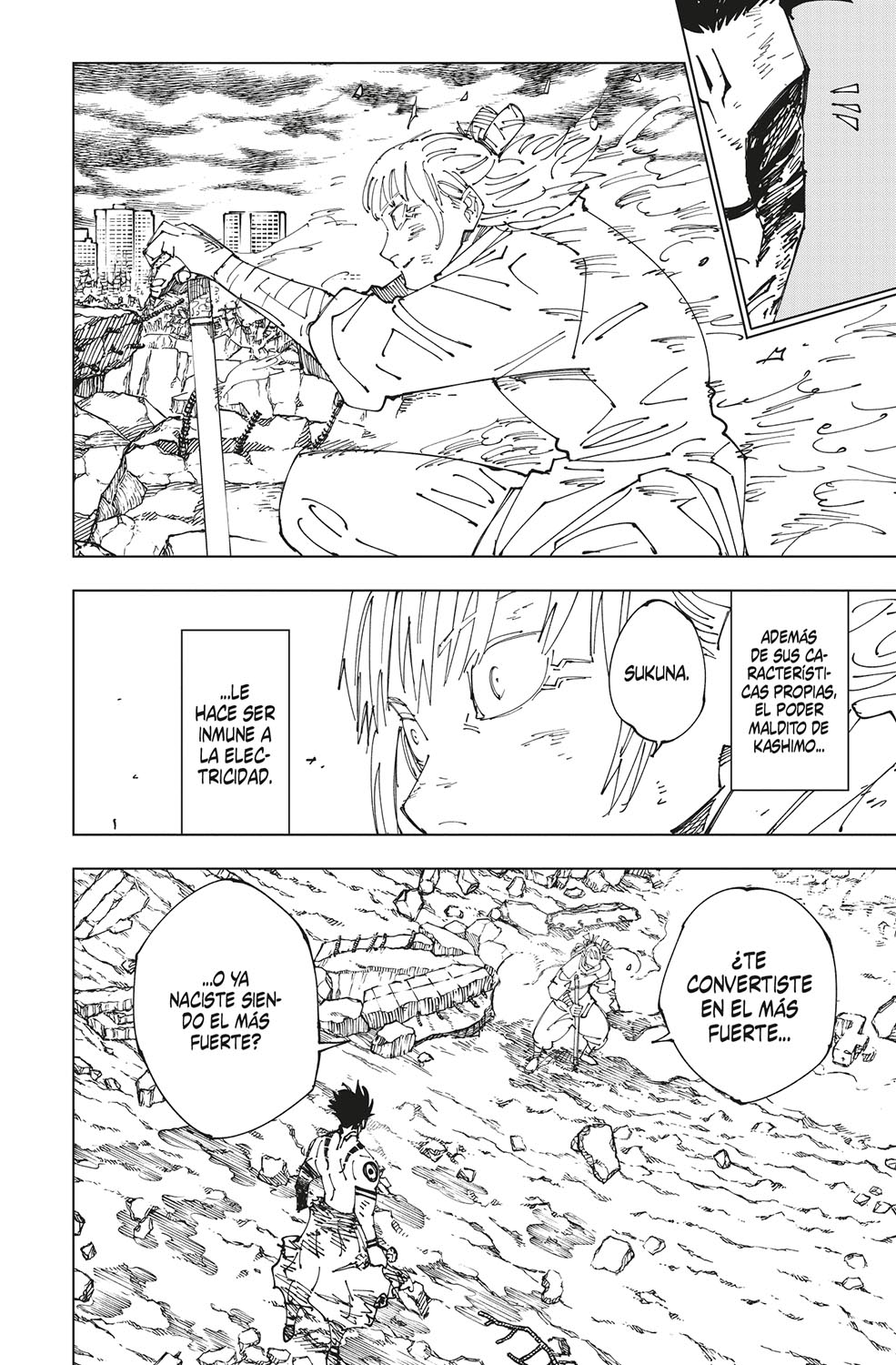 Gojô ha sido derrotado. Pero sin apenas tiempo para lamentar su muerte, Hajime Kashimo aparece en el campo de batalla para enfrentarse a Sukuna. Pero a la vez que Kashimo lleva a cabo una técnica que pondrá en riesgo su propia vida, ¡Sukuna completa su transformación por medio de la encarnación!