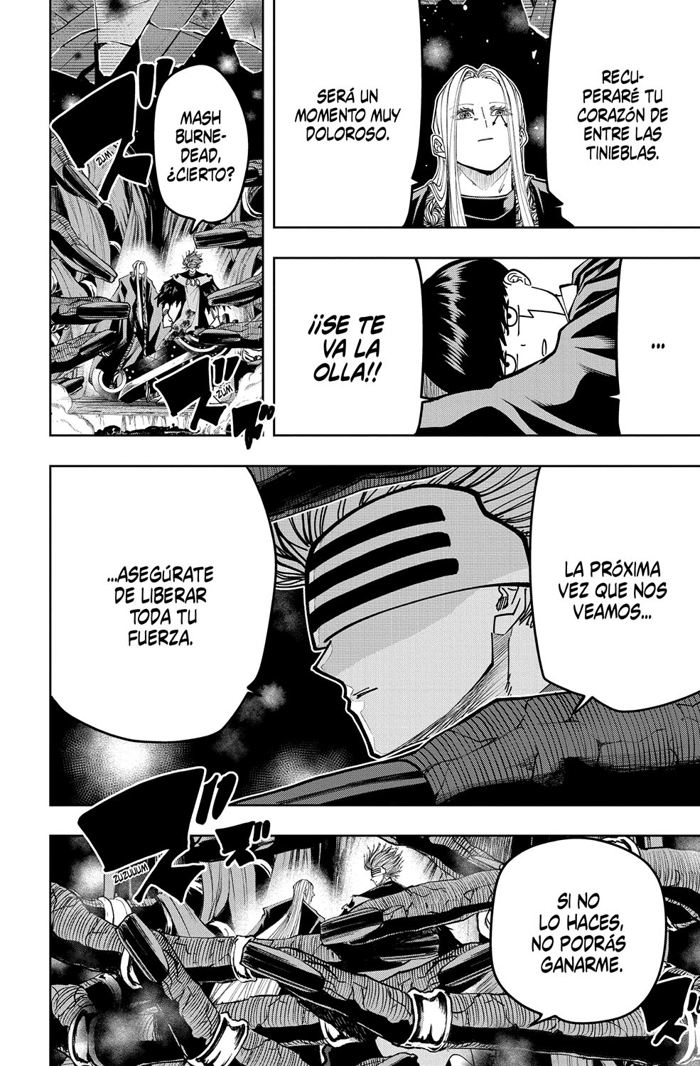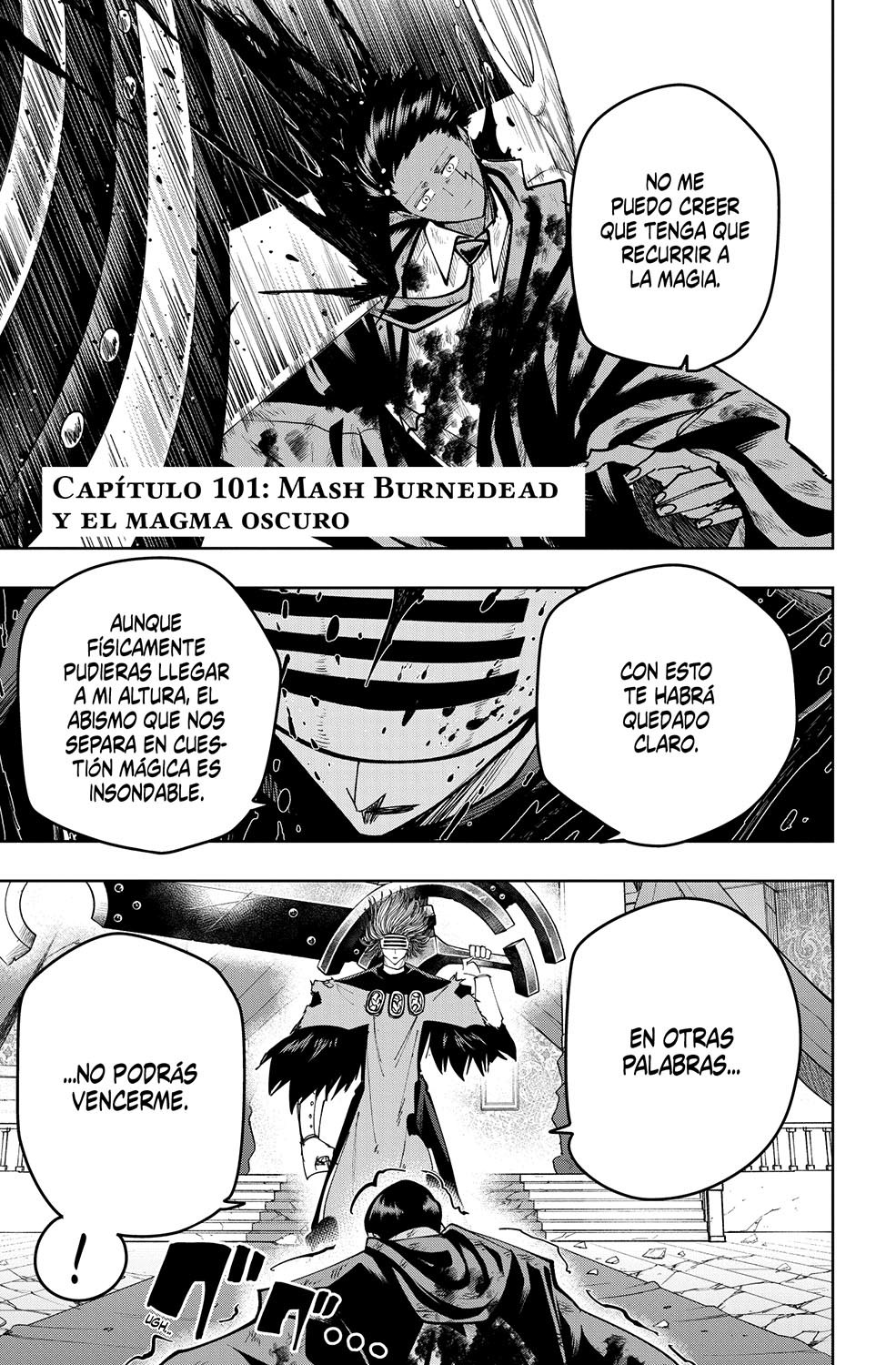 Justo cuando se estaba llevando a cabo el examen final de visionario divino, ¡apareció Doom, el hijo mayor de Innocent Zero! Mash se enfrentó al apabullante poder de Doom, pero fue golpeado de repente por algo misterioso...