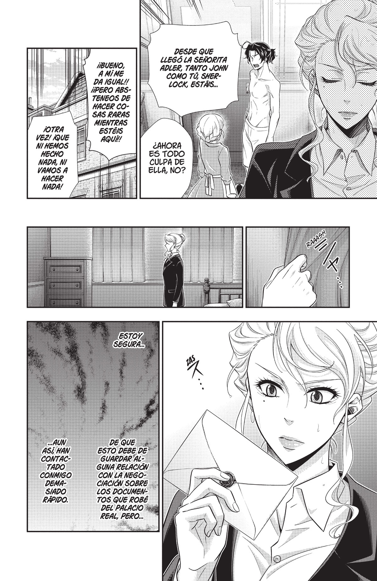Albert ha preparado un baile de máscaras con el Palacio de Buckingham como escenario para así poder entablar negociaciones con Irene. Durante el baile, se revelarán tanto el contenido de los documentos confidenciales, como el verdadero deseo de Irene… El señor del crimen, un famoso detective y un demonio de mujer con una hermosa cara. ¡¡Una extraña relación a tres bandas que nos llevará al final del escándalo del Imperio Británico…!!