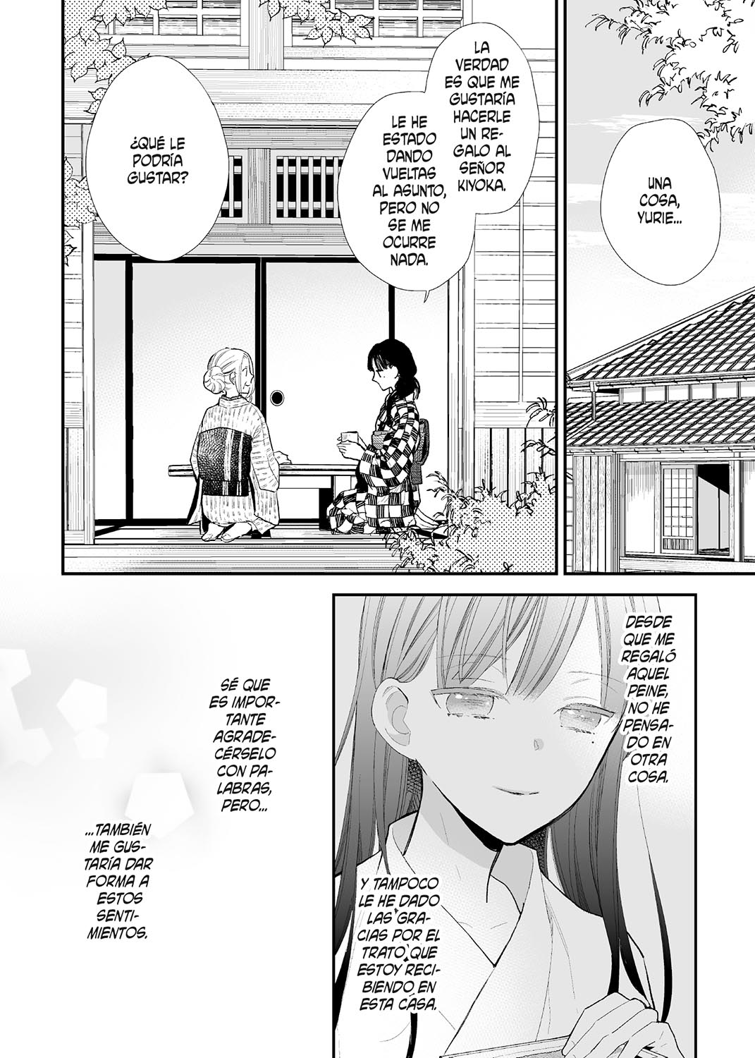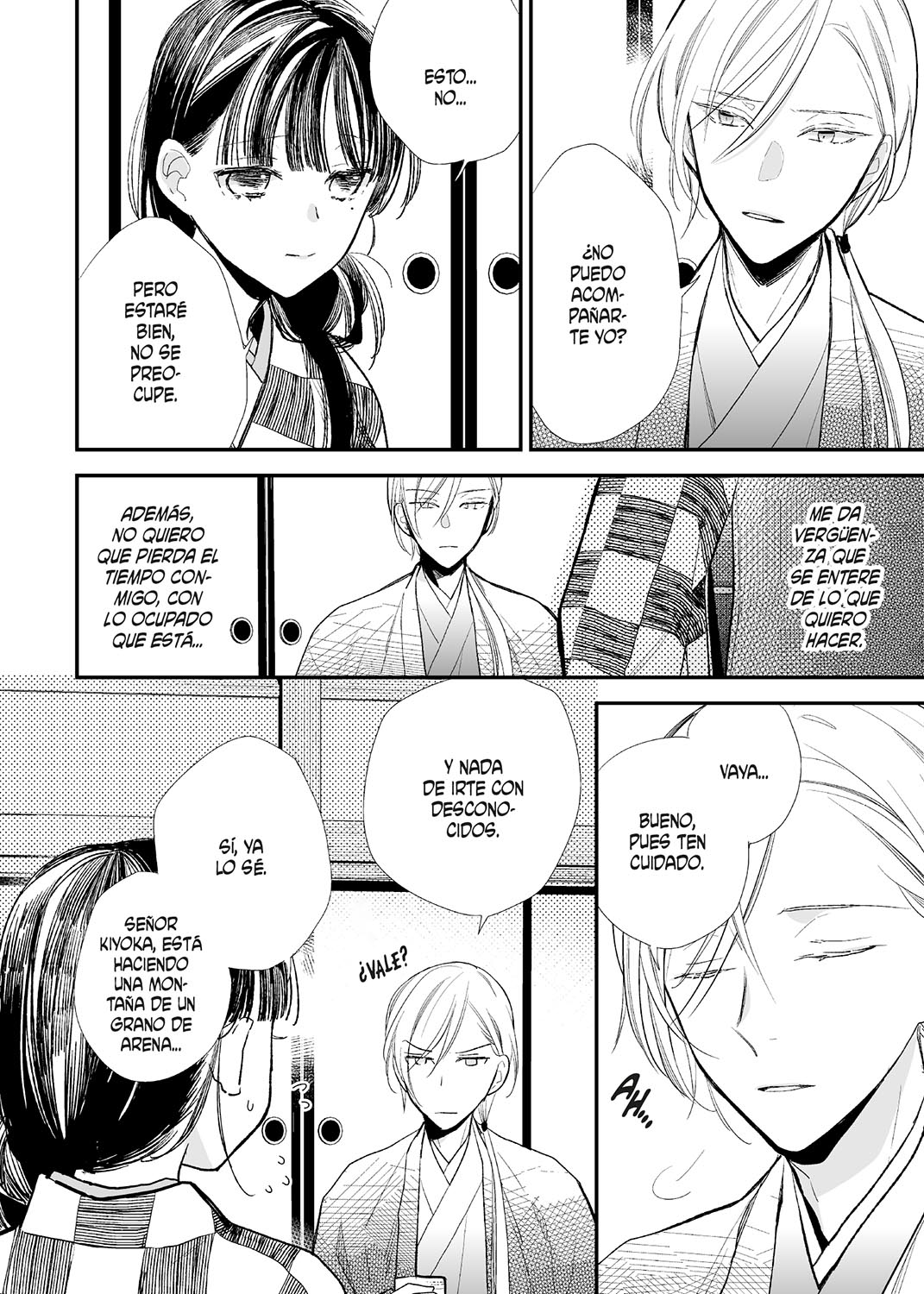 Ahora, al ver que Miyo era totalmente distinta a lo que se espera de la señorita de una familia prestigiosa, Kiyoka Kudô ha empezado a mostrar interés en ella y ha acabado por apreciarla. Sin embargo, al no tener poderes, Miyo no considera que tenga derecho a ser su esposa...