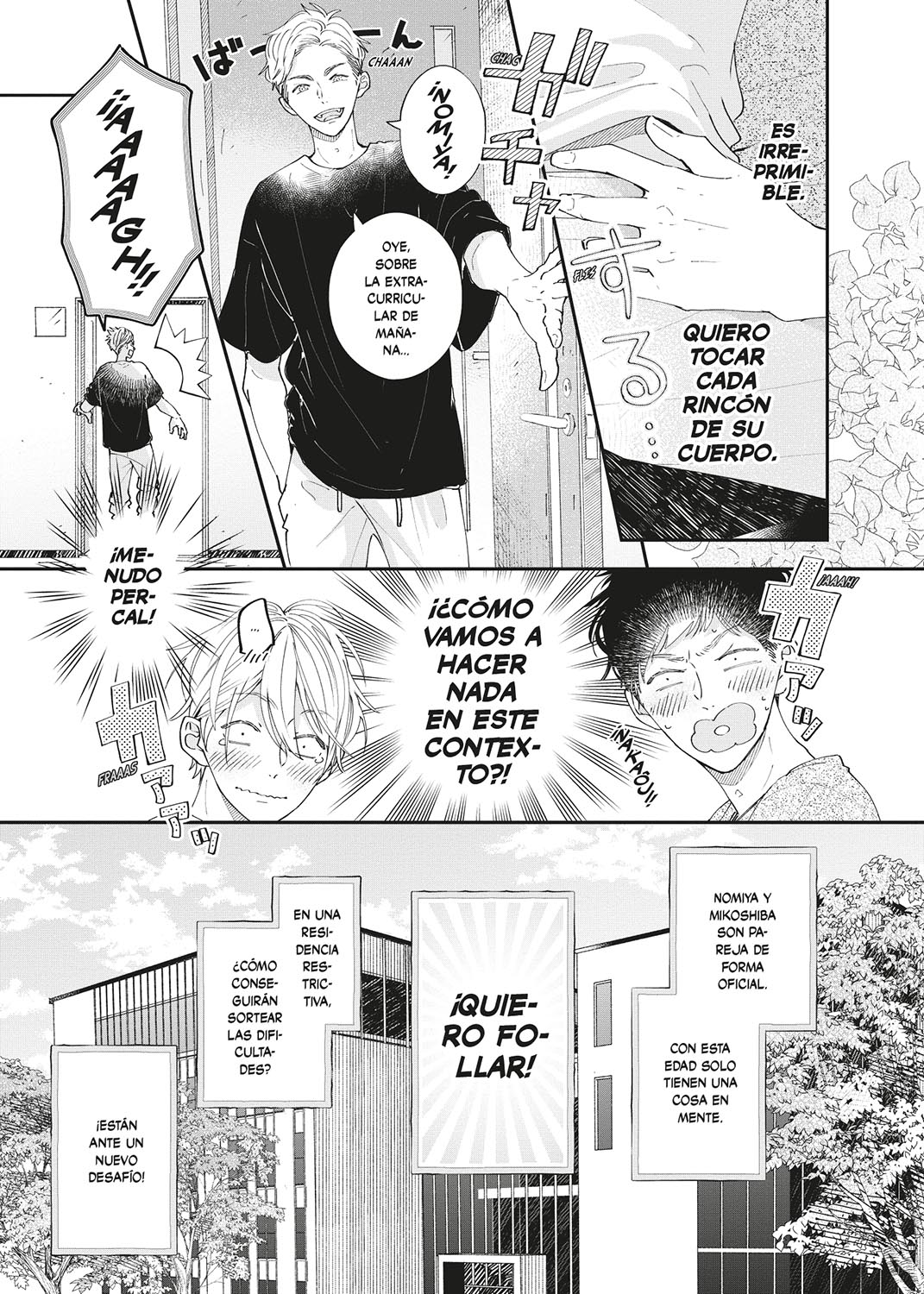 Nomiya y Mikoshiba por fin anuncian oficialmente que van a salir, pero lo que en un principio iba a ser amor y tranquilidad a tope, resulta que les explota en la cara. Todos los sentimientos reprimidos hasta ahora y los impulsos más salvajes están desbocados. ¿Podrán mantener el control cuando pasan tanto tiempo juntos compartiendo habitación?