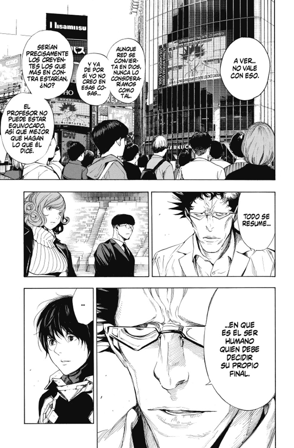 La reunión entre los restantes candidatos a Dios culmina con la decisión de Mirai de erigirse en Dios y el empeño de Yoneda en impedir que surja una criatura. Ambos se enfrentan cara a cara, ¿quién dirige la flecha blanca hacia donde está posada su mirada, conducido por el afán de seguir lo que cree justo...? Por otra parte, ¡algo ocurre en el alejado lugar donde Saki y los demás están pendientes del devenir del duelo...!