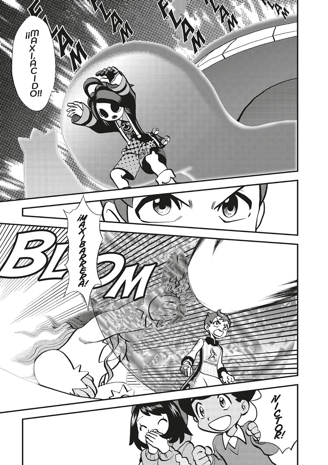Alistair en Pueblo Ladera y Sally de Pueblo Plié siguen enfrentándose a nuevos oponentes, cada vez más fuertes. ¡Los aspirantes luchan sin descanso! Y entre desafío y desafío, una aciaga señal hace acto de presencia en el corazón de ciudad Artejo. Un momento, ¿qué ha visto Roy en la planta subterránea…?