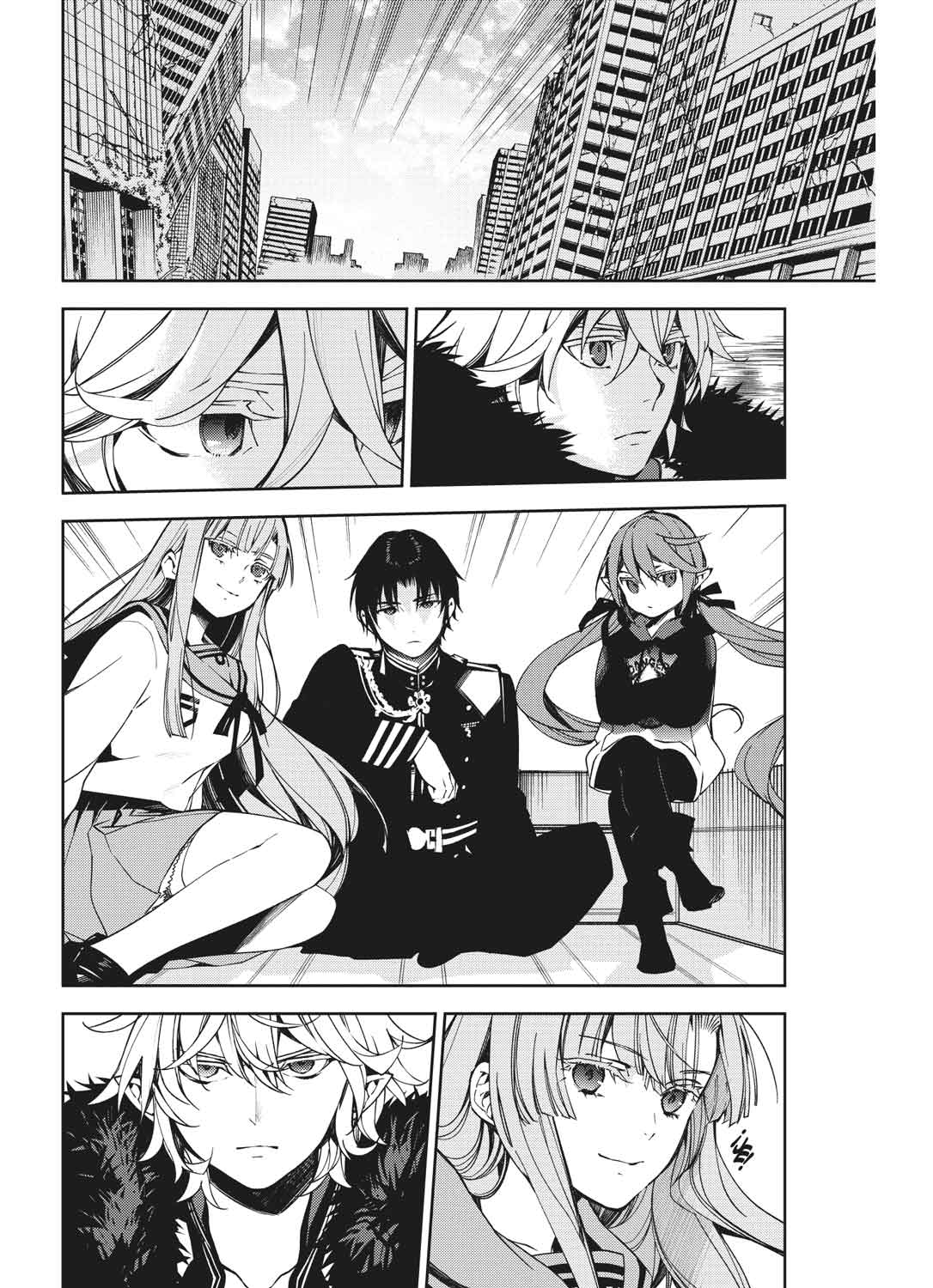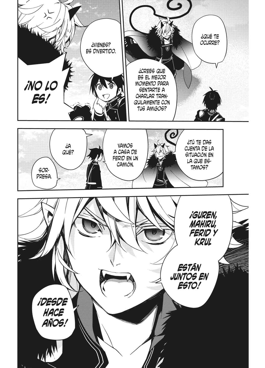 Disfruta de un nuevo volumen de este apocalíptico manga creado por Kagami, Yamamoto y Furuya que cuenta con millones de lectores en todo el mundo, además de un famoso anime creado por Wit Studio. ¡No te pierdas la precuela, Seraph of the end: Guren Ichinose, catástrofe á los dieciséis, completa en catálogo! Mientras se desplazan para que Guren le cuente sus planes, Yûichirô le pregunta si mató a su familia. A Guren le fallan las palabras, pero Yû quiere una respuesta concreta y cruzan sus espadas. Y mientras luchan, Guren se da cuenta de lo mucho que Yûichirô ha crecido y Yûichirô ve lo fuerte que es Guren, pero entonces…