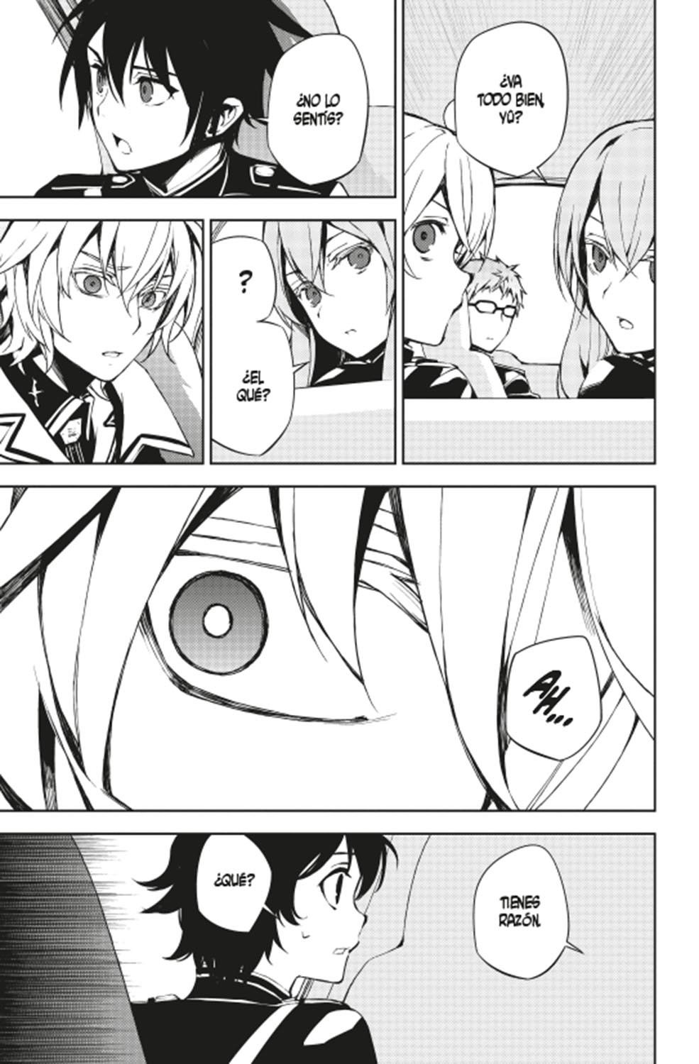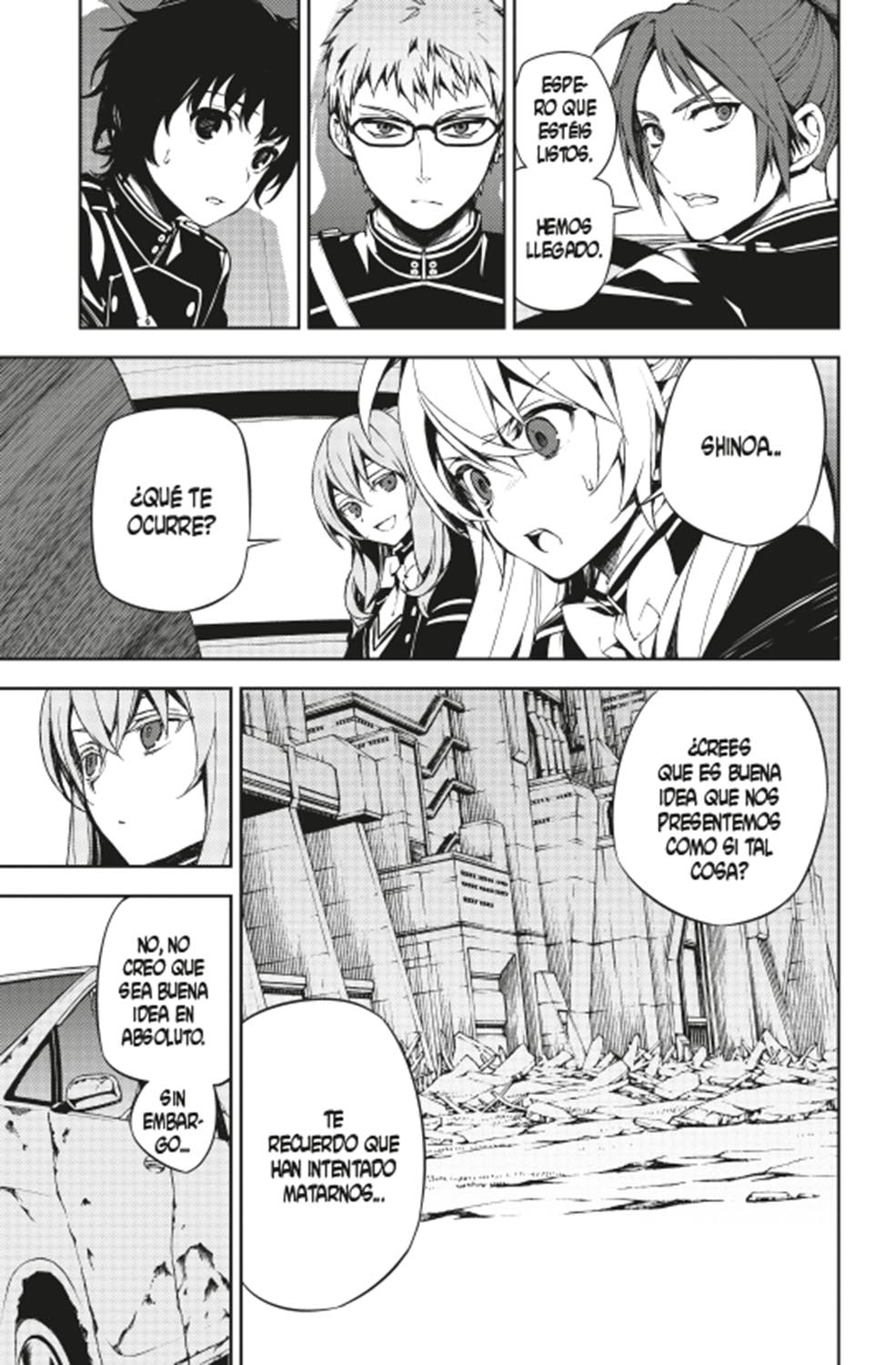 Yûichirô y los chicos regresan a la base del Ejército Imperial Demoníaco en Shibuya. A pesar de no haber sido invitados, el nuevo cabeza de familia de la casa Hiiragi les permite la entrada. Sin embargo, una vez en las instalaciones, Mikaela percibe la ominosa presencia de Shikama Dôji, quien trata de tomar posesión del cuerpo de Kureto...