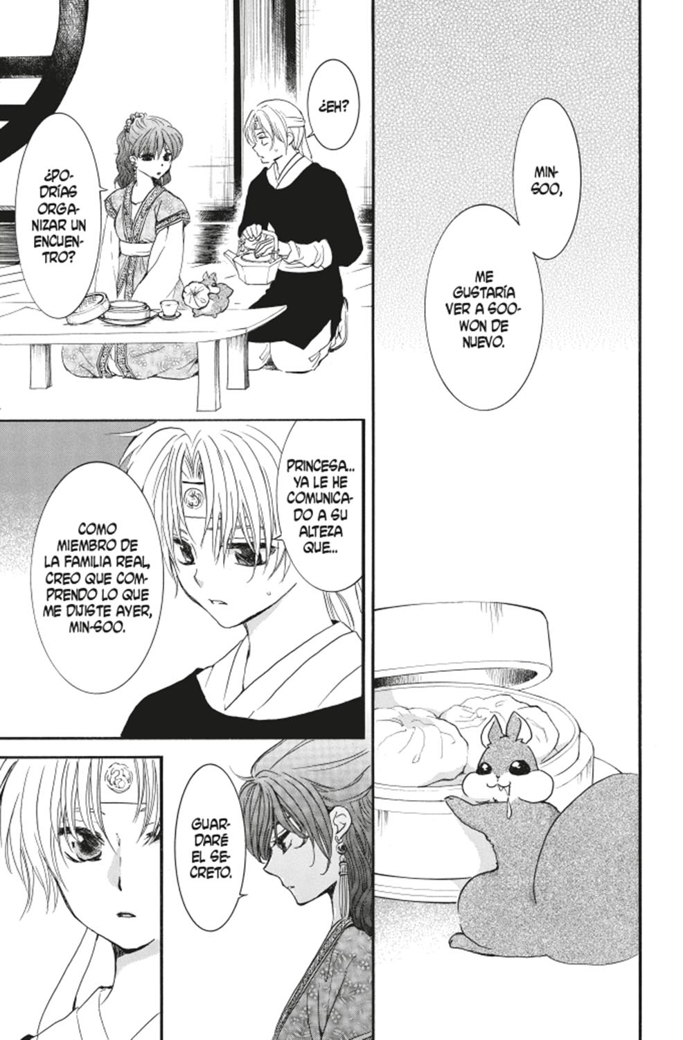 A Yona le han prohibido todo contacto con Hak y los cuatro dragones, pero cuando pide tener un encuentro con Soo-won, también se lo rechazan. Por la noche, la princesa se escapa de sus aposentos a hurtadillas y se dirige al despacho del rey, pero cuando se encuentra delante de Soo-won no le salen las palabras... ¡Además este tomo incluye una historia corta que retrata la juventud de Hak!