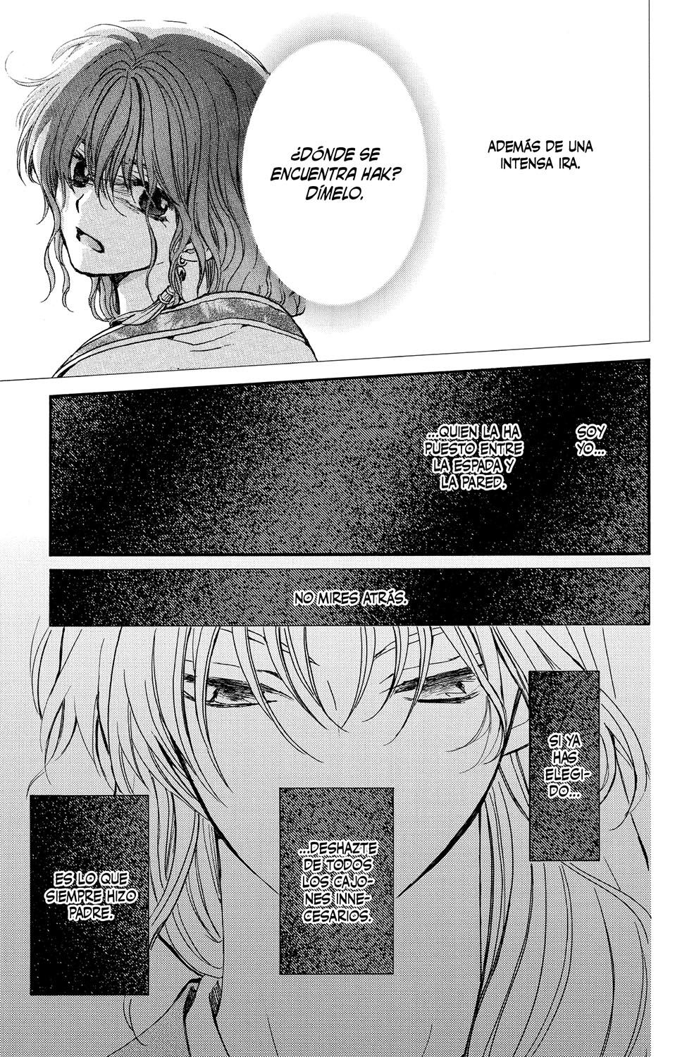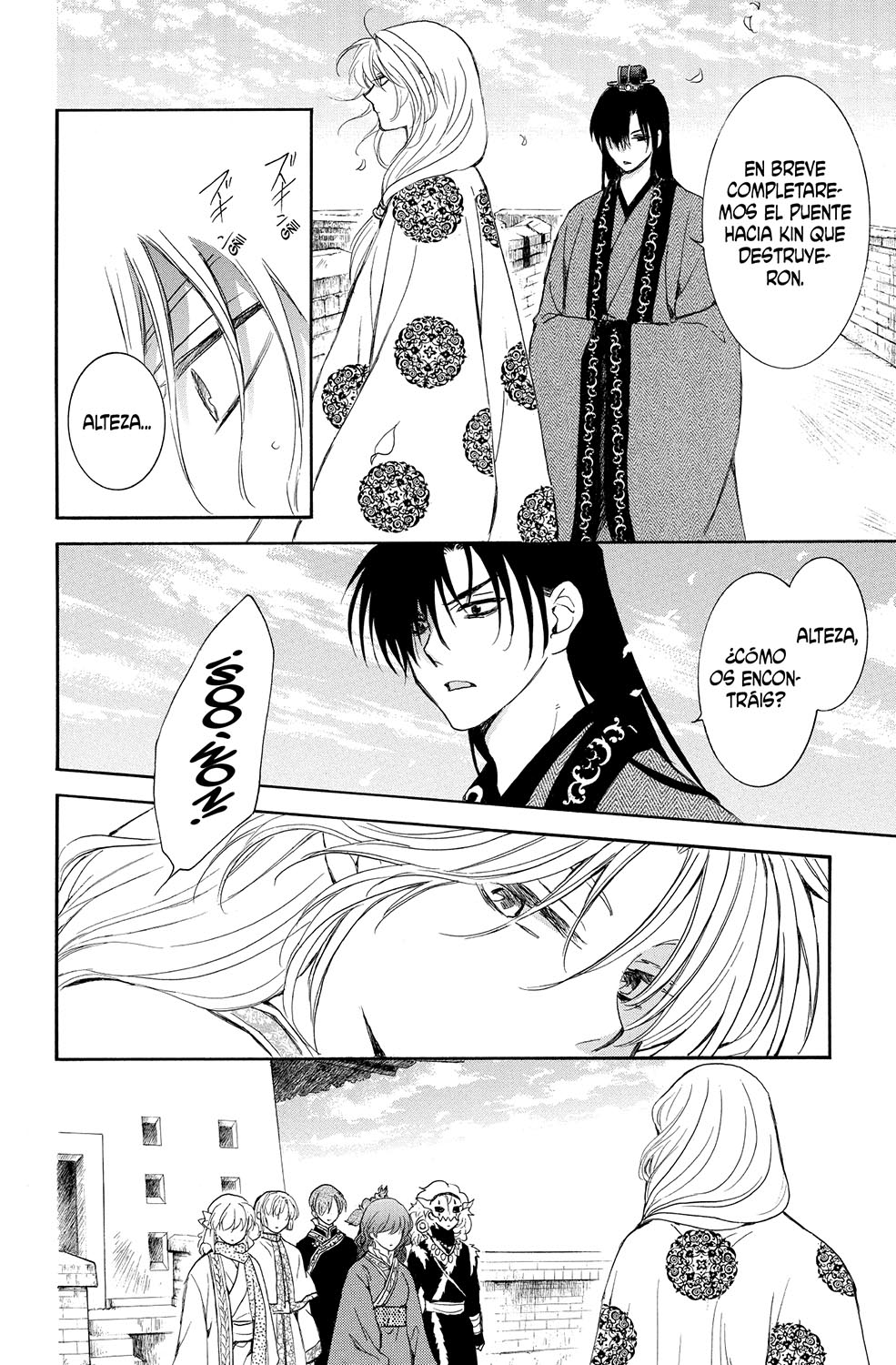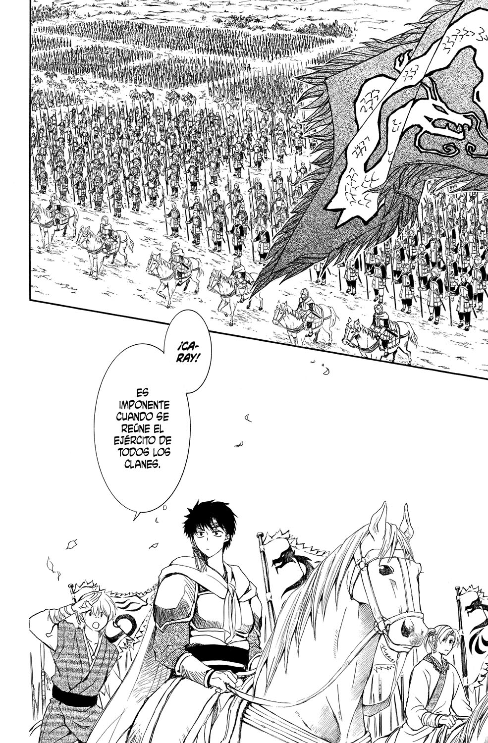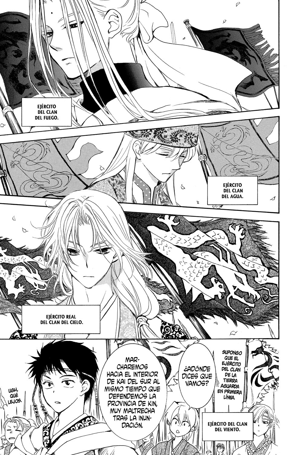 El ejército del reino de Kôka convoca a todos los clanes antes de la batalla contra Kai del sur. Además, puesto que Yona también participa en el conflicto, se persona en el campo de batalla junto a los cuatro dragones. Por otro lado, a Hak le perdieron la pista en la inundación provocada por el general Lan. ¡¿Qué habrá sido de él...?!