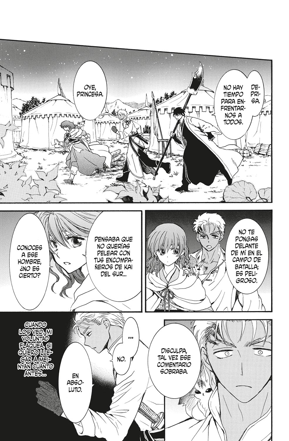 Con el propósito de traer de vuelta a Mei-nyan, Yona y los demás se infiltran en el campamento de Kai del sur. Pero mientras Hak se enfrenta al general Hittan, Val aparece ante él y le anuncia que ha decidido abandonar a sus antiguos compañeros de armas...