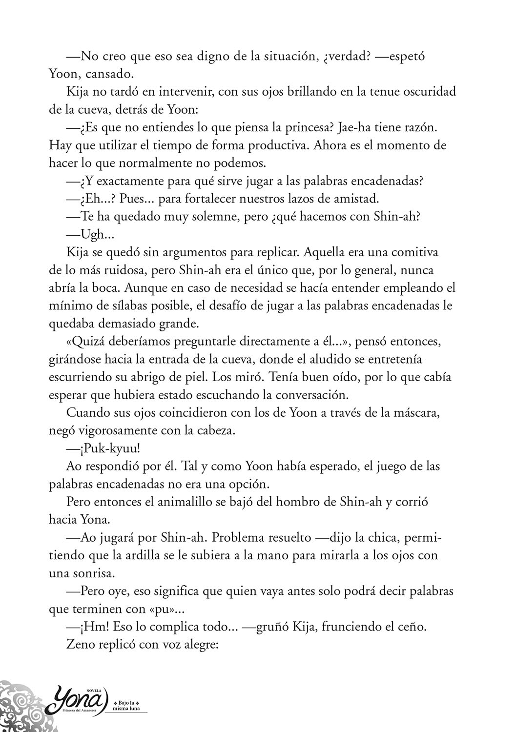 Esta novela de nuestra princesa favorita tiene lugar después del capítulo 47 del manga, que se corresponde con el volumen 9 del manga. Situada durante los primeros días del reinado de Soo-Won, Yona recibe malas noticias y tiene que tomar algunas decisiones importantes. La novela enfatiza aspectos de interés que no se abordan en el manga y que harán las delicias de sus lectores.
