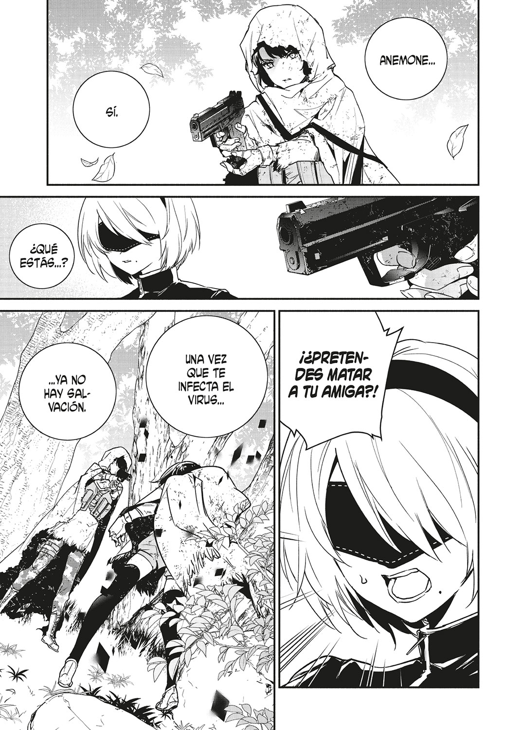 Después de que su comandante les niegue la retirada, a las androides no les queda más remedio que seguir adelante con la operación. Así, en mitad de un combate contra un grupo de máquinas, la Resistencia, formado por androides que llegaron a la Tierra dos siglos atrás, las salvan de un destino fatal.