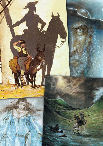 Tres importantes autores gráficos españoles como son Miguelanxo Prado, Daniel Torres y Luis Royo, éste por partida doble, mostraron su respeto hacia esta imprescindible novela presentándonos su particular versión del Quijote en unos pósteres que Norma Editorial recupera ahora para destacar la figura de Miguel de Cervantes en el IV centenario de su fallecimiento.
