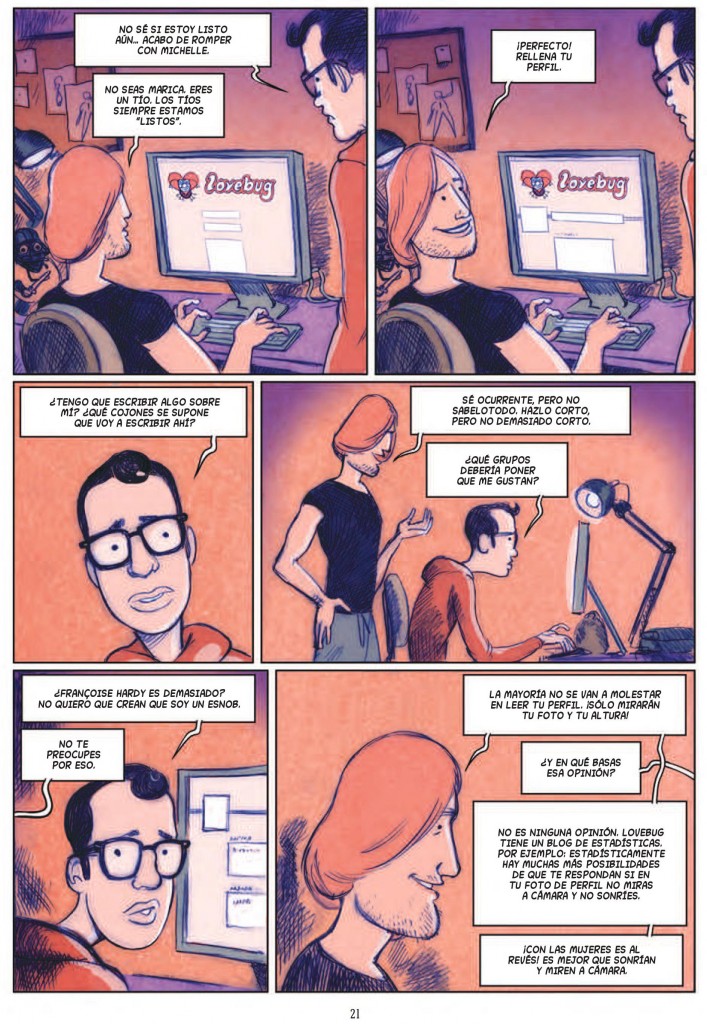 En esta novela gráfica narrada con humor y cinismo, el brillante Koren Shadami elabora una acertada radiografía sobre la transformación que han sufrido las relaciones con el uso, cada vez más frecuente, de las nuevas tecnologías. LoveBug, una mezcla entre Tinder y Meetic, es una red social que se construye sobre perfiles que contienen una buena foto, una descripción escrita con gracia y un método sistemático que permite tener encuentros sexuales con desconocidos.