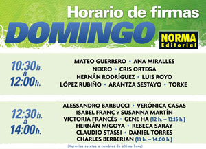 Y como cada año tendremos a los mejores autores firmando en el Salón, si quieres planificar tu agenda, no te pierdas nuestros horarios: