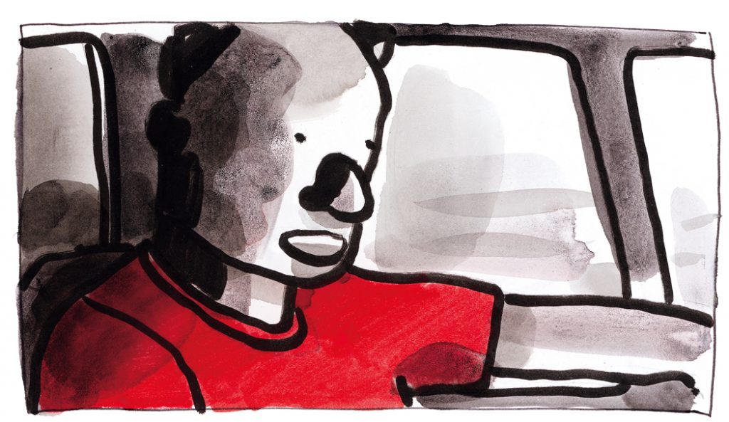 Barroux: No soy un especialista: novela gráfica, cómic... Simplemente me pareció que este era el procedimiento que más encajaba con el texto de Bessora. Este tipo de recortes me daba mayor libertad a la hora de concebir las imágenes. Cuando empecé a trabajar en Alpha, quería que pudiera ser un cuaderno de trabajo o de campo, con todas esas imperfecciones que le añaden vida. Por eso trabajé sobre mis bocetos de forma más intensa que en otras ocasiones, para poder deconstruir mejor mis imágenes. Los negros y el color se han hecho enteramente con rotuladores para niños. Utilicé también algunos grises aguados. Todo el texto está escrito a mano, como si Alpha hubiera relatado su propia aventura.