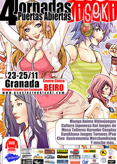 Siguiendo con las diversas manifestaciones en torno al manga y el anime por toda España, ahora nos desplazamos a Andalucía, más concretamente a Granada: la Asociación Kiseki, dedicada a promocionar la cultura japonesa entre la juventud granadina, organiza los 23 al 25 de este noviembre sus IV Jornadas de Puertas Abiertas. La cita será en el Centro CívicoEl Berio (Plaza Ciudad de los Cármenes, nº1) y las actividades incluirán el Torneo Federado Super Smash Bros Melée (organizado por la Federación Española de Juegos de Lucha), un freeplay con una gran variedad de videojuegos (P2, P3, GameCube, Wii, Xbox, Xbox360...), talleres (de japonés, de cocina japonesa, de origami y papercraft, de mah-jongg...), biblioteca con más de 1.500 tomos de comic/manga, proyecciones de anime, concursos (de karaoke, de cosplay, de bandas sonoras...), ginkama, frikitest, juegos de rol, discotaku, etc. ... ¡y la entrada para todas estas actividades será gratuita! Para más información: www.asociacionkiseki.com