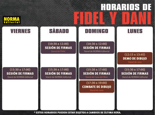 Y, para acabar, os recordamos que estos horarios pueden estar sujetos a cambios de última hora, por lo que os recomendamos visitar este blog o consultar nuestras redes sociales (nos encontraréis como @normaedmanga) para estar al tanto de cualquier novedad.