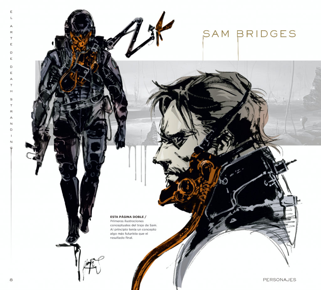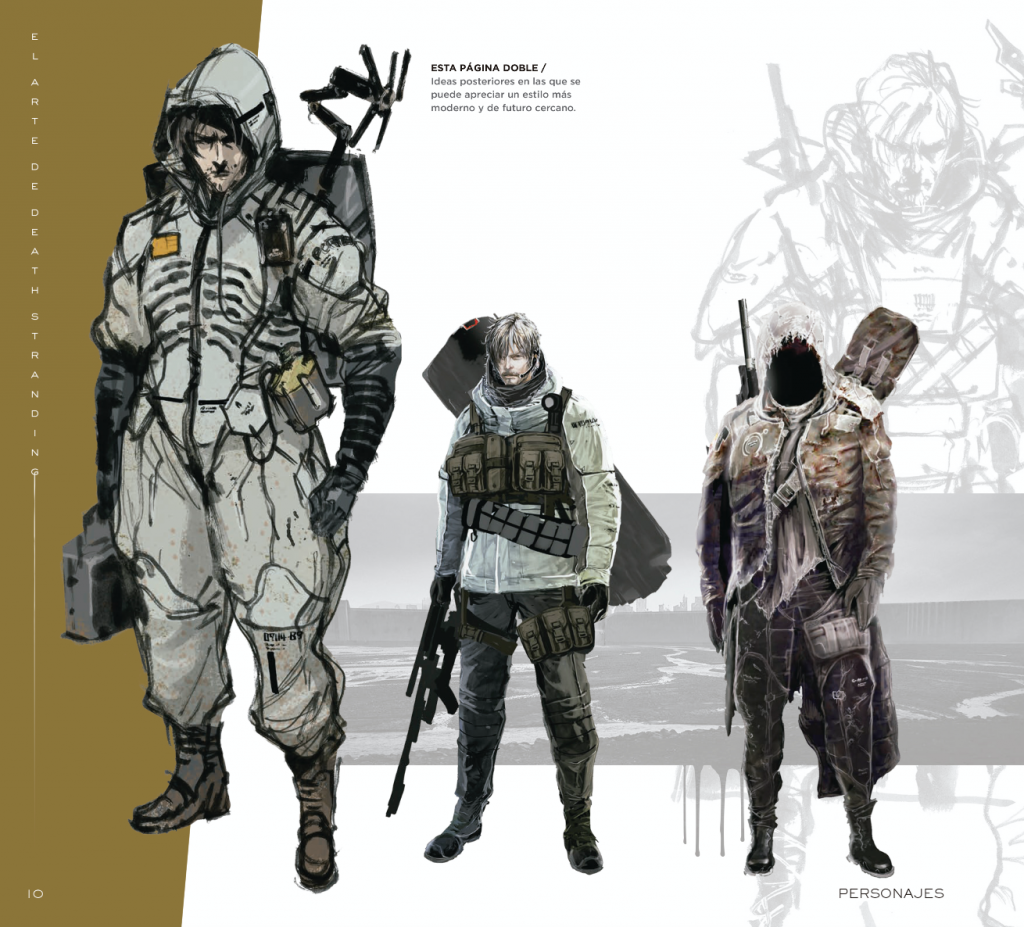 El arte de DEATH STRANDING incluye cientos de ilustraciones conceptuales de los personajes, el equipo, las ubicaciones y las criaturas que aparecen en el videojuego, así como ideas iniciales y también desechadas, además de material gráfico creado por el aclamado artista Yoji Shinkawa.