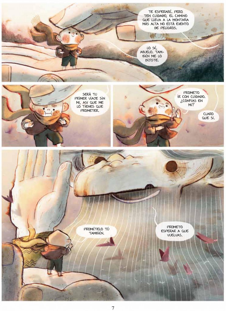 A un nieto y a su abuelo les apasiona viajar, pero debido a los achaques de la edad, el fatigado cuerpo del anciano ya no aguanta más. Las enormes montañas que han crecido en su espalda, se han vuelto demasiado pesadas. Así que el joven nieto irá en busca del viento más fuerte para que su abuelo pueda viajar una vez más. El niño emprenderá su aventura más importante, porque su vida está a punto de cambiar para siempre. No dejéis escapar la oportunidad de leer esta joya del noveno arte.