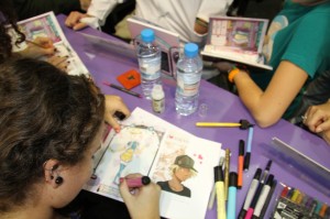 Empezamos el viernes 29 con la Masterclass en el stand de Norma, como no sabíamos cómo sería el público que vendría a vernos, nos preparamos una clase de cómo dibujar a los personajes principales de nuestro cómic y explicar en qué pensamos el día en que las creamos, el por qué eran así, sus proporciones, su carácter…