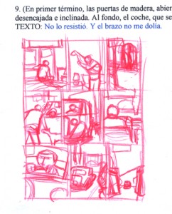 Soy incapaz de pensar una historia si antes no me visitan sus imágenes, unas imágenes a las que me he referido ya en alguna entrevista como un ovillo de uno de cuyos hilos (porque nunca sé cuántos lo conforman en realidad) tiro y tiro durante las páginas de las que dispongo sin llegar normalmente hasta el final del mismo. Pero luego me gusta que el dibujante se sienta cómodo, que sea coautor de esa tarea. Y, como Bartolomé señala, le proporciono las referencias justas, como el posible parecido de un personaje a un actor o algún detalle de ambientación, cualquier cosa que me parezca que tiene un valor narrativo “per se”, pero poca cosa, muy poca cosa… Y, por descontado, tiene libertad total para alterar mis observaciones.