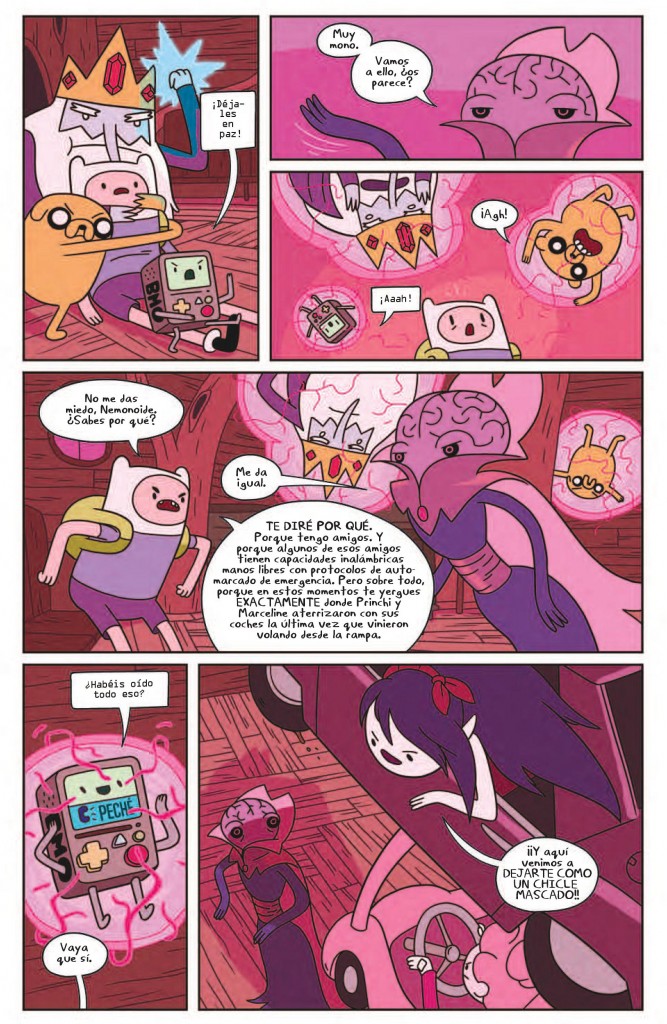 ¡Zuzumba! El Nemonoide está absorbiendo la memoria de Finn El Humano mientras el el País de Ooo se está yendo al garete. Pero no os preocupéis peñuqui porque nuestras amigas siempre valientes, Princesa Bultos, Princesa Chicle y Marceline están siempre hay para echar un cable cuando es necesario. ¡A disfrutar de la lectura!