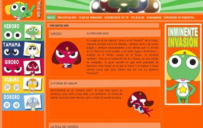 Los fans del grupo de ranas invasoras pueden acceder a todos los secretos de su personalidad y risas visitando la web: http://keroro.luk.es/