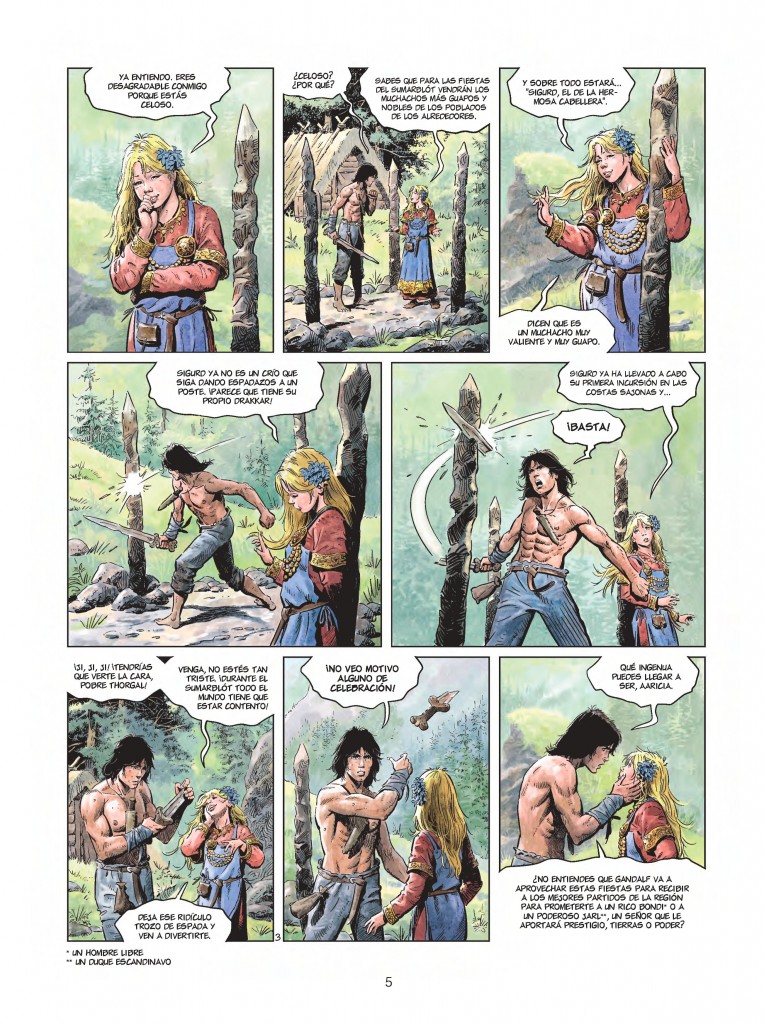 Gandalf quiere aprovechar la ocasión para poner a prueba a los pretendientes y elegir a uno para entregarle la mano de su hija y convertirse en un nombre todavía más poderoso. Aunque todo esto es una treta, pues el monarca ya sabe a quién le va a entregar a Aaricia, sin importarle los demás pretendientes ni que la chica amé a Thorgal. Los jóvenes amantes planean escaparse para disfrutar de su amor eternamente, pero unos hechos terribles están a punto de suceder en el poblado con la llegada de una skjaldmö, una feroz guerrera virgen temida por sus habilidades de combate.