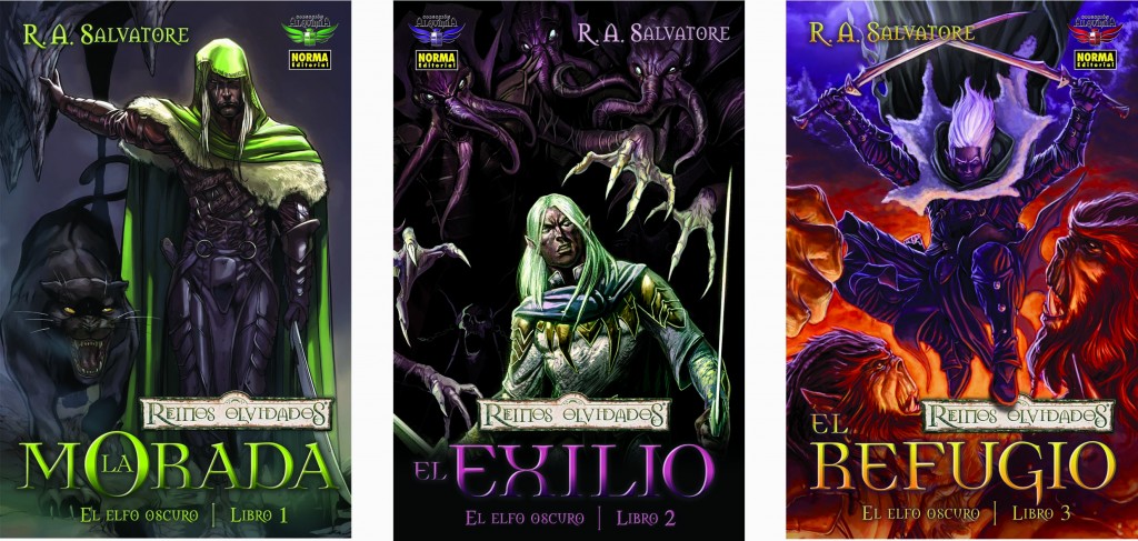 Dentro la colección Alquimia, Norma Editorial ha publicado las siguientes series ambientadas en los Reinos Olvidados. Los mundos de Dungeons and Dragons, la primera entrega de la serie, a las que le ha seguido las trilogías dedicadas a El Elfo Oscuro y El Valle del Viento Helado. Todas ellas imprescindibles para los aficionados al género y una pequeña muestra del talento de R.A. Salvatore.
