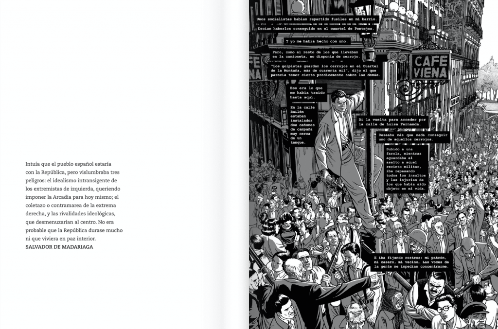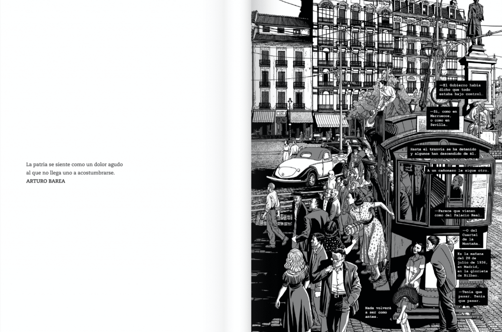 Felipe Hernández Cava (Premio Nacional por las Serpientes Ciegas) y Miguel Navia (Chueca, Gran Vía) repasan el primer año de la guerra civil española en este espectacular proyecto.