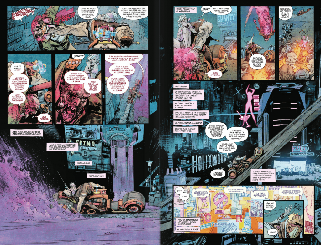 ¿De qué va? Islas de Los Ángeles, 2089: la humanidad es adicta a la tecnología. Una población de ociosos desempleados busca una placentera distracción para olvidar la contaminación tóxica y está dispuesta a robar y matar con tal de comprar su siguiente chute digital. Solo merece la pena vivir por el subidón virtual. Es la mayor industria, la única industria, la droga que todo el mundo necesita, y gánsteres la controlan. ¿Y a quién recurren esos gánsteres cuando necesitan que se ejecuten sus normas? A los alguaciles Led Mella y Debbie Declive. Este dúo está a punto de recibir un trabajo que les obligará a salir de la miseria familiar de Los Ángeles para acabar con el último país libre de tecnología de la Tierra: la nación jardín de Tokio.