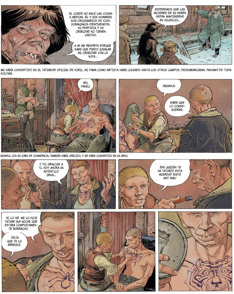 Encerrado con su familia en un gulag de Siberia, Pavel, emprende una nueva vida. Poco a poco se irá convirtiendo en una bestia feroz, salvaje y solitaria. En este lugar desolador y deprimente sobrevive como tatuador gracias al talento que heredó de su padre para dibujar. En el campo de concentración mejora su técnica bajo la supervisión de una especie de chamán del dibujo. Gracias a sus trabajos su fama se extiende el gulag, hasta convertirse en el mejor tatuador de todos. En esta imprescindible obra nos encontramos con una historia de venganza personal y violencia, que irá cambiando a medida que Pavel salga del gulag siberiano y vuelva a su tierra natal. En Estados Unidos, Pavel, seguirá tatuando y empezará a colaborar con la policía con su don para realizar retratos, para intentar resolver un atroz caso de un violador homicida. Veremos que su presente y su pasado están conectados.