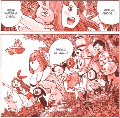 El sensei de la viñeta nos presenta en esta curiosa historia a un grupo de heroicos personajes que se acaban de enfrentar a la Gran Oscuridad, la cual amenazaba con destruir todo su reino. Lo curioso es que Asano no nos quiere contar lo sucedido en tal épica batalla, sino que la historia se centra en la vuelta a casa del pintoresco elenco de guerreros que han salido victoriosos.