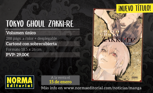 El universo de Sui Ishida vuelve con el lanzamiento del segundo artbook de la serie. ¡Sabemos que lo estábais esperando! Tokyo Ghoul zakki:re amplía todo lo que conocemos del universo de los ghouls, incluyendo multitud de anécdotas sobre el proceso de creación de la serie, comentarios del autor y detalles inéditos que dejaremos que descubráis por vuestra cuenta. Con Tokyo Ghoul zakki:re se compone un libro de arte de casi 300 páginas a color y que contará con todo lujo de detalles, incluida su edición en cartoné. ¡Os espera el próximo 15 de enero en librerías!