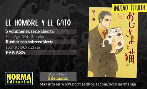¿Se os ocurre algo más tierno que la relación entre un hombre de mediana edad y su gato? A nosotros tampoco y por ese motivo os traemos El hombre y el gato, de Umi Sakurai. Una historia dulce y divertida que nos pondrá en la piel de Kanda, quien tras la muerte de su esposa y la lejanía de sus hijos adultos decide hacerse con un gato de belleza… especial, al que nadie quería adoptar. Así da comienzo esta entrañable historia de amor que se encontrará disponible a partir del 5 de marzo.