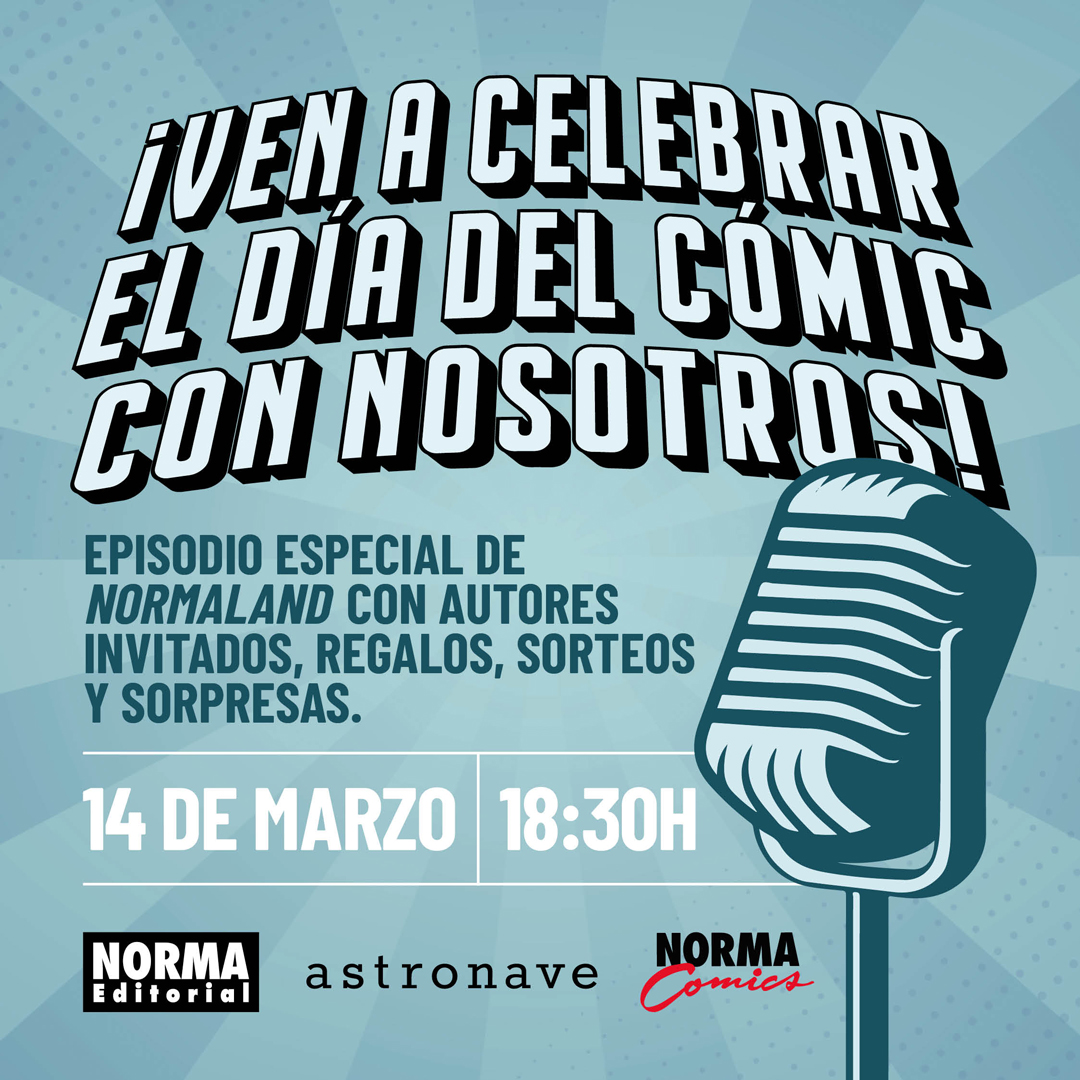 El domingo 17 de marzo es el DÍA DEL CÓMIC, así que para celebrarlo el próximo jueves 14 de marzo a las 18:30 grabaremos un episodio del podcast de Normaland con público desde Norma Comics (Passeig de Sant Joan, nº9 - 13) de Barcelona.