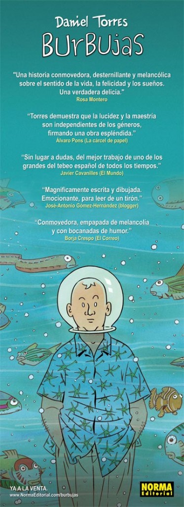 Burbujas, la nueva novela gráfica de Daniel Torres, está recogiendo críticas excelentes y muy buenos comentarios por parte de los lectores. La primera impresión es que el cambio de registro ha gustado tanto a los seguidores de la trayectoria de Torres, como a nuevos lectores. ¡Desde aquí nuestra enhorabuena al autor!