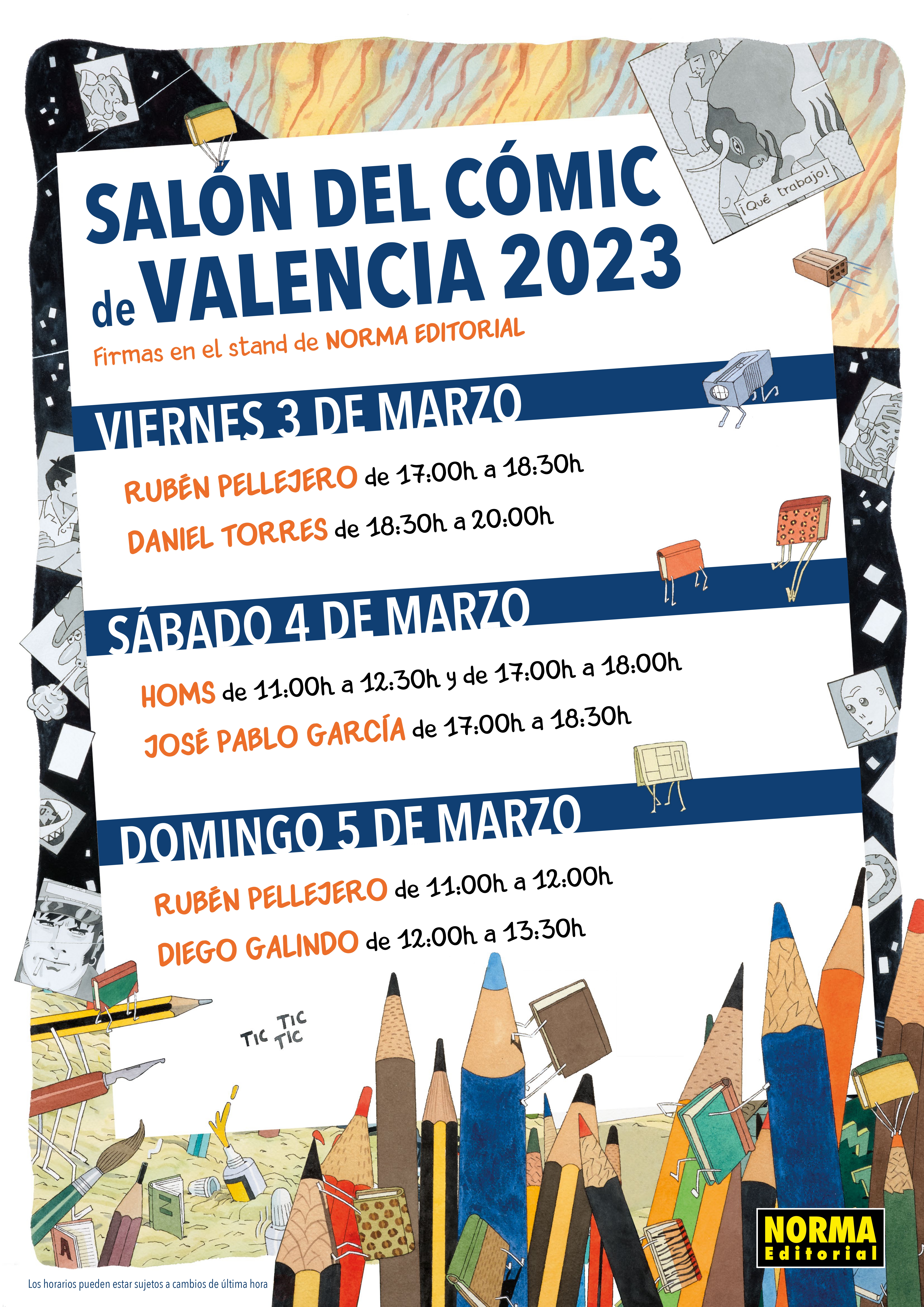 Recordad que los horarios pueden estar sujetos a cambios de última hora. Se recomienda consultar a los organizadores, miembros del stand o las redes sociales de la editorial para tener la información actualizada.