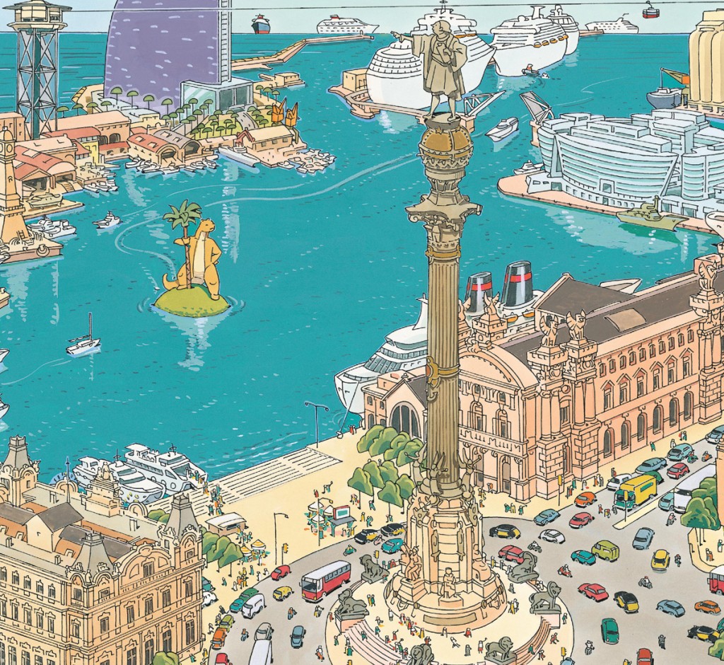 Sin duda, Daniel Torres, sigue en plena forma y lo demuestra a través de unos originales preciosos realizados con acuarelas. En TOM Barcelonaencontramos una obra idónea para enseñar a los más pequeños la fisonomía de la capital catalana, aunque también es una oportunidad de gozar del imaginario del autor y las aventuras de este dicharachero dinosaurio aventurero.