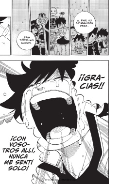 Al final no estaban bien, pero... ...eran todos mis amigos. ¡¡Gra- cias!! ¡Con voso- tros allí, nunca me sentí solo! ©Hiro Mashima/ KODANSHA Ltd.