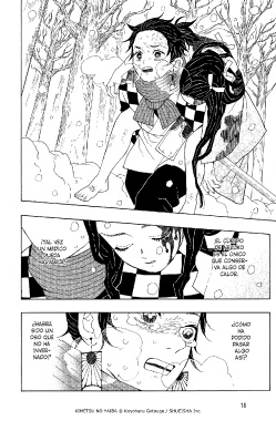 ¡TAL VEZ EL CUERPO UN MÉDICO DE NEZUKO PUEDA ES EL ÚNICO SALVARLA! QUE CONSER- VA ALGO DE CALOR. ¿HABRÁ ¿CÓMO SIDO UN HA OSO QUE PODIDO NO HA PASAR INVER- ALGO NADO? ASÍ? 18 KIMETSU NO YAIBA © Koyoharu Gotouge / SHUEISHA Inc.