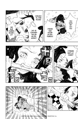 ¡AGUAN- TA, POR FAVOR! ¡VA- MOS, NE- ¡SÉ ZU- QUE ¡TIENES KO! PUEDES ¡NO TE QUE HACER- CONVIER- HACER LO! TAS EN UN ES- UN DE- FUERZO! MONIO! ¡¡TIENES QUE LU- CHAR!! PLOP PLOP PLOP KIMETSU NO YAIBA © Koyoharu Gotouge / SHUEISHA Inc.