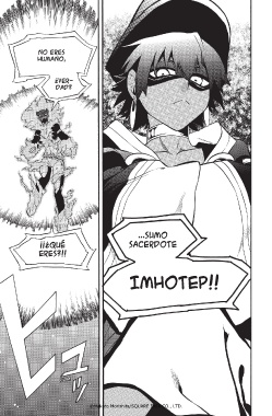 No eres humano, ¿ver- dad? ...sumo ¡¡¿Qué sacerdote eres?!! Imhotep!! FIUM ©Makoto Morishita/SQUARE ENIX CO., LTD.