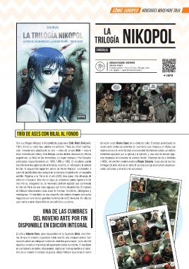 Con La trilogía Nikopol, el historietista yugoslavo Enki Bilal (Belgrado, del actor suizo Bruno Ganz en la cinta de culto El amigo americano) se