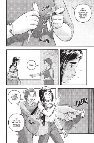 los hombres de ahora no son como los de mi época. toma. ¡y tira a abrir tu nuevo hogar! yo saco las maletas del ascensor mientras.