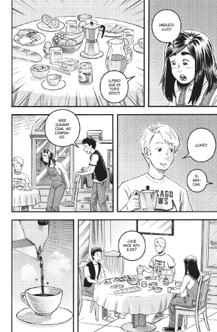 ¡menudo lujo! ¡¿pero qué es todo esto?! ayer quemar cena. así compen- so. ¿café? sí, gra- cias. ¿qué hace hoy, elda?